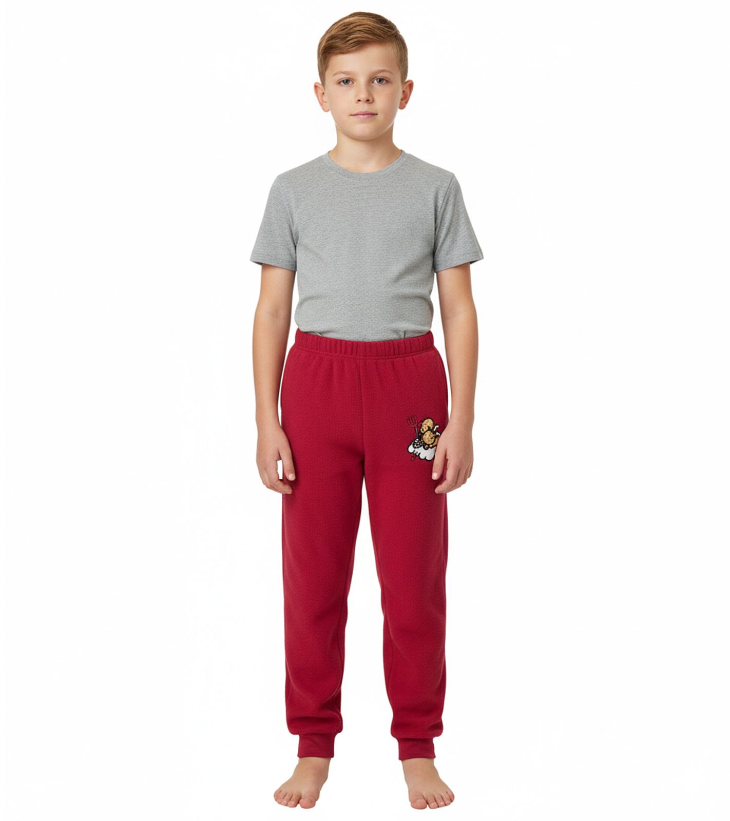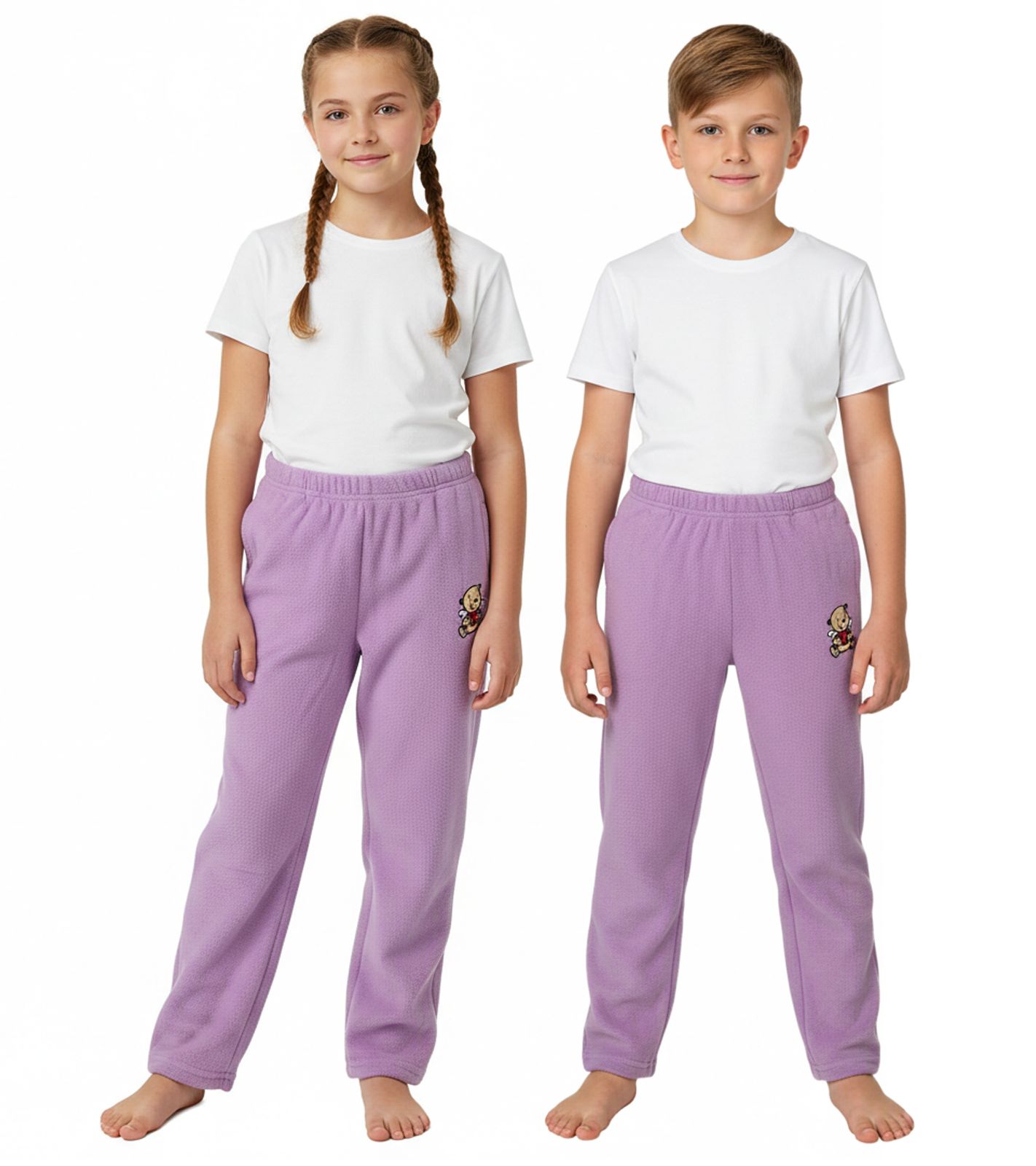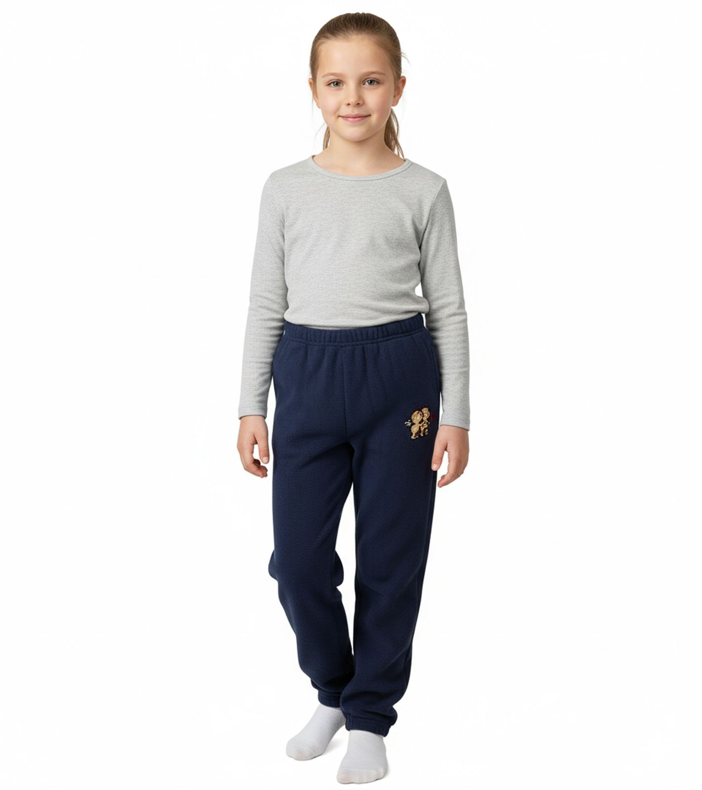 Morbidi pantaloni STEINBECK per bambini e bambine in micropile, pantaloni da jogging con una graziosa applicazione, pantaloni della tuta in rosso, rosa o blu navy