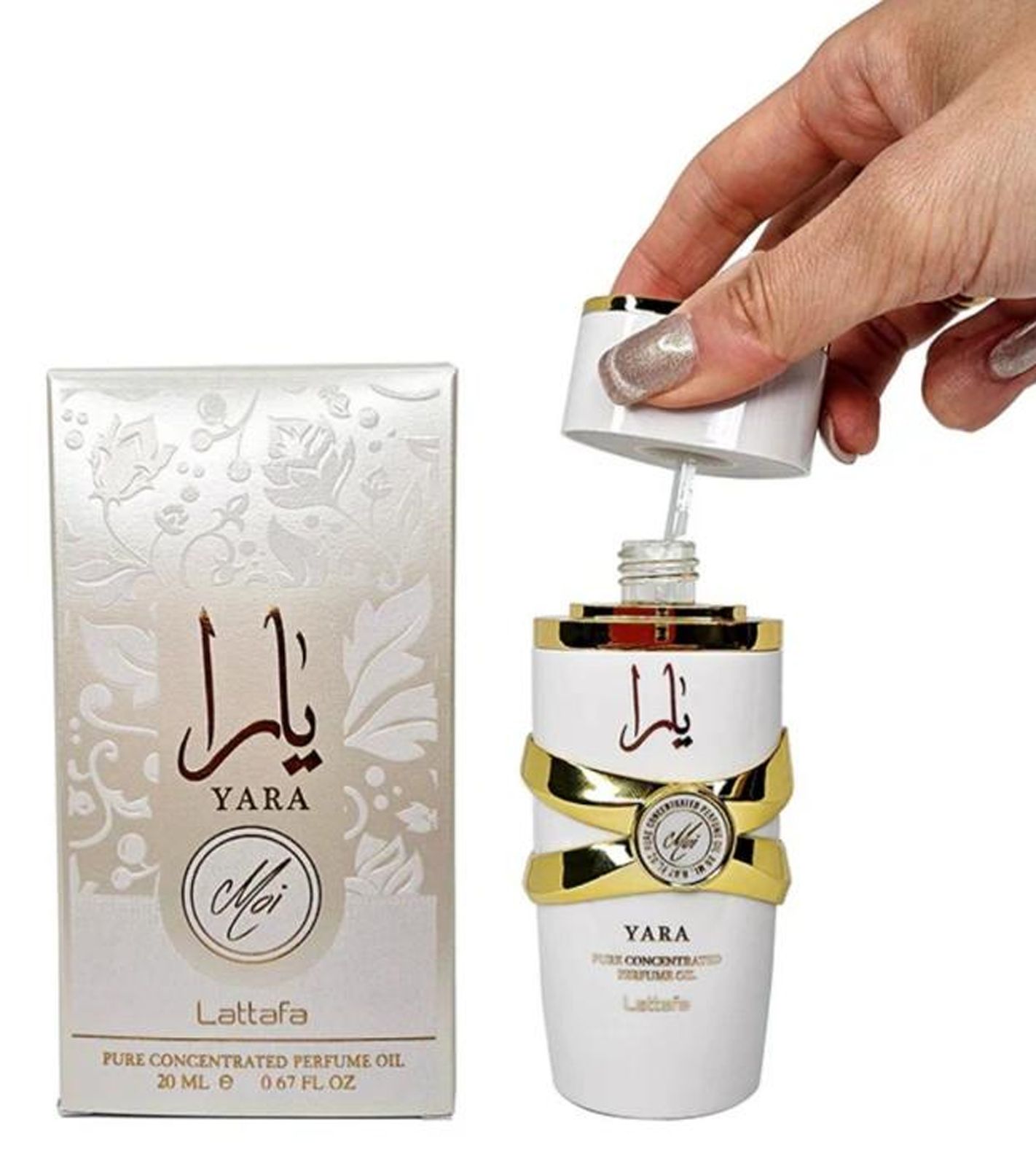 Olio profumato da donna Lattafa Yara Moi, fragranza concentrata floreale-legnosa, 20 ml, bianco