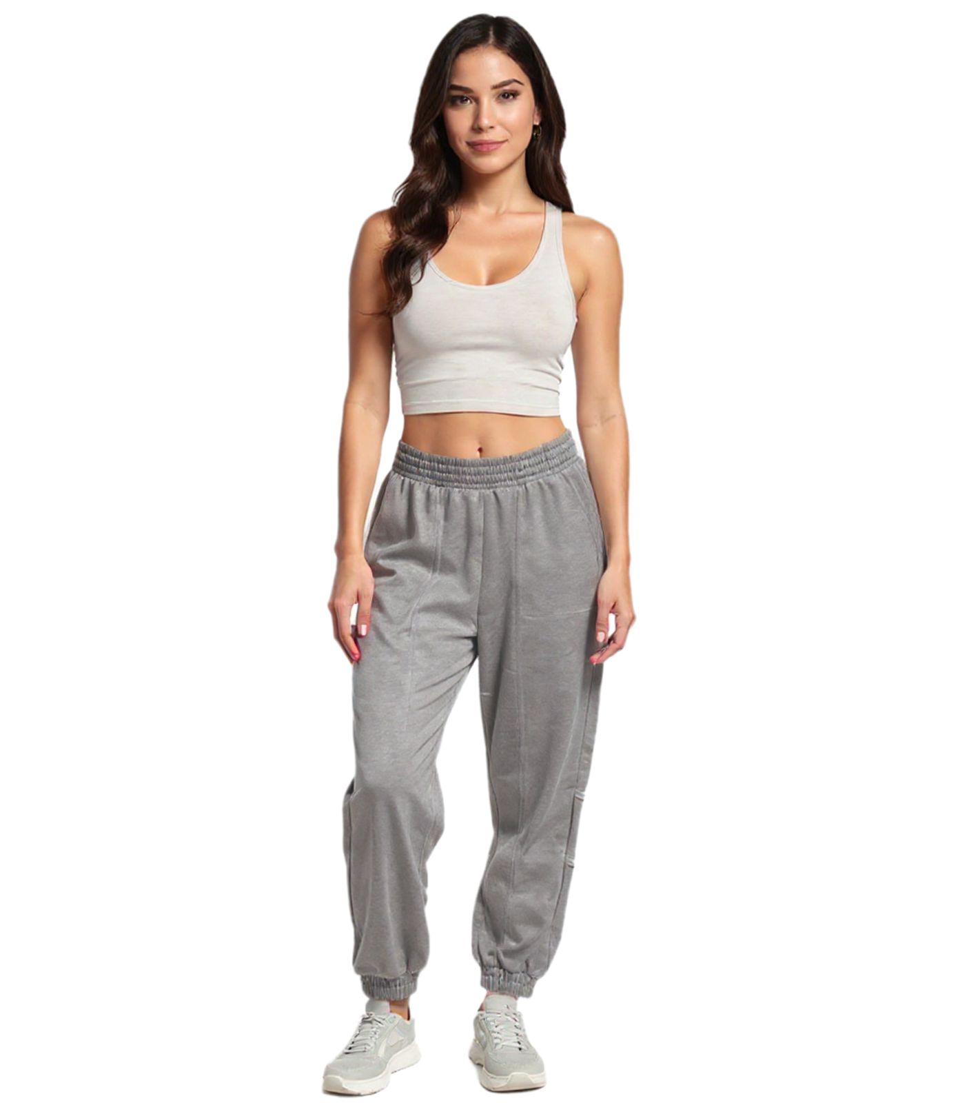 Pantaloni da jogging da donna ZEGY - Comodi pantaloni della tuta con tasche laterali - Pantaloni in cotone 1068 in beige, grigio o kaki