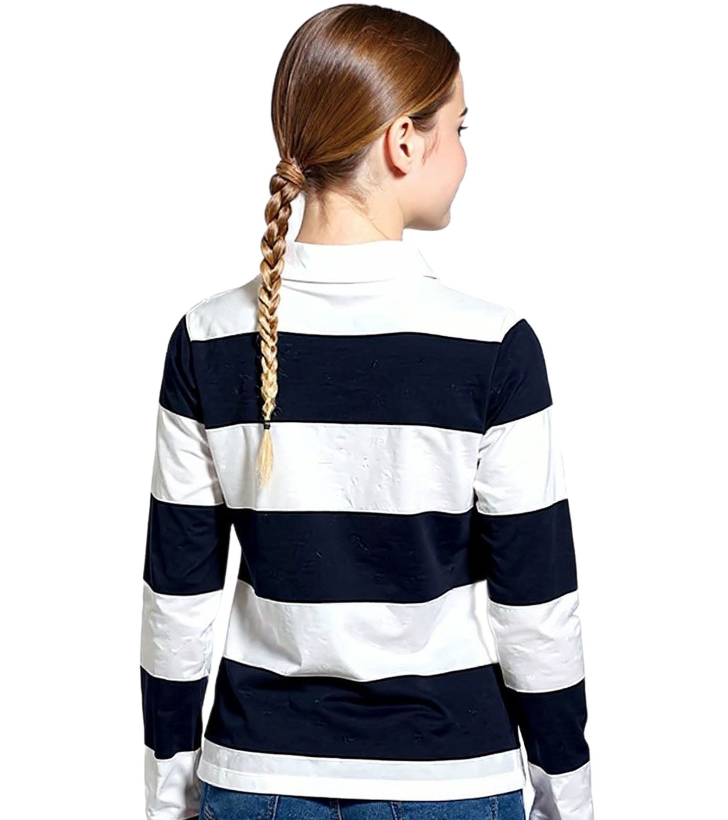 Le nostre ampie righe splendidamente lavorate a maglia aggiungono un tocco di allegria al classico colletto polo.