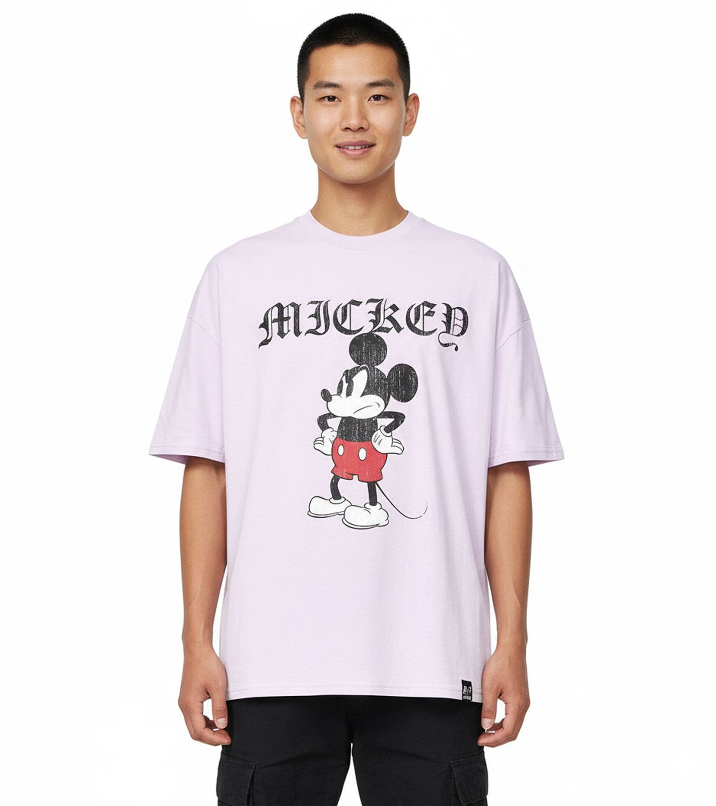 RE:COVERED X Disney T-shirt da uomo con stampa di Topolino brontolone in cotone a scollo tondo MMDIS2689 viola