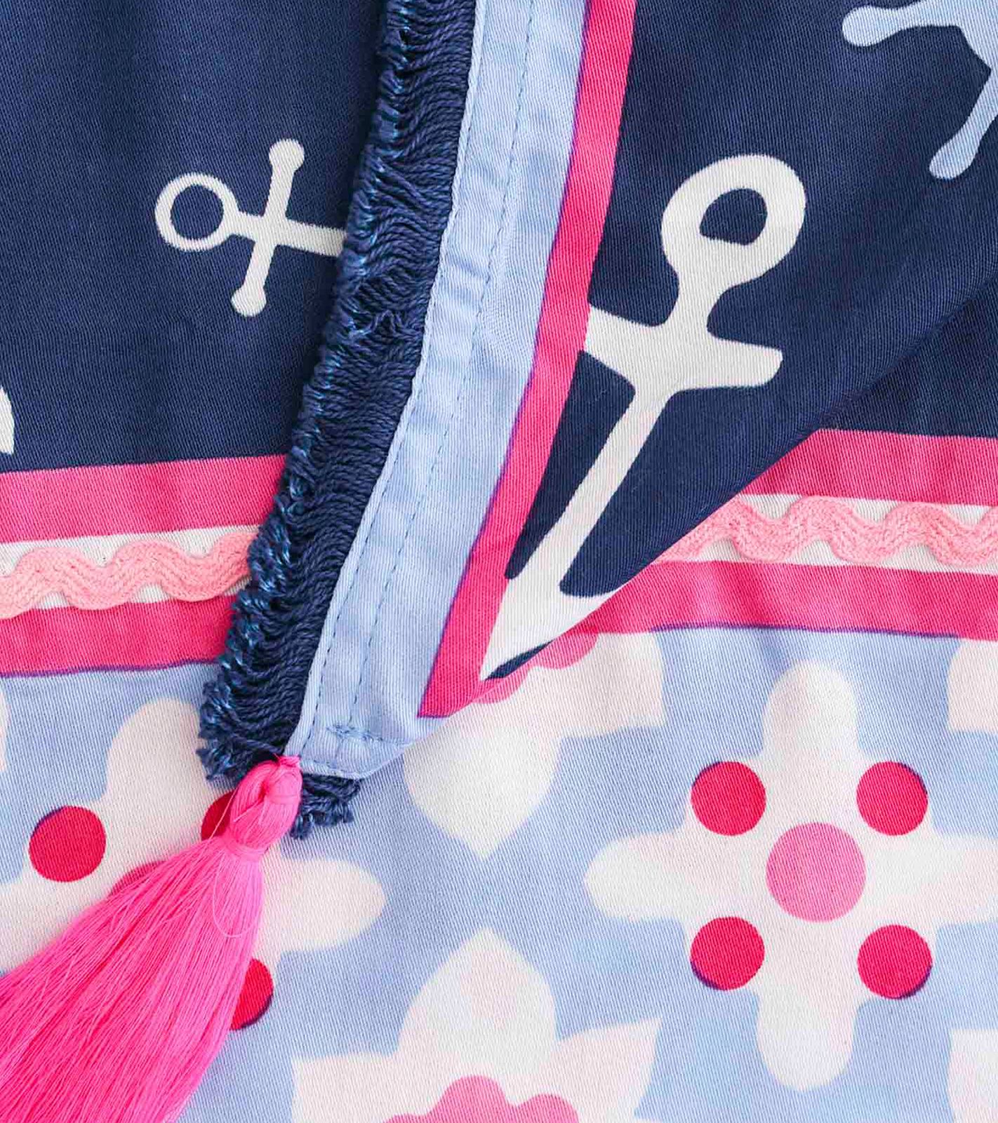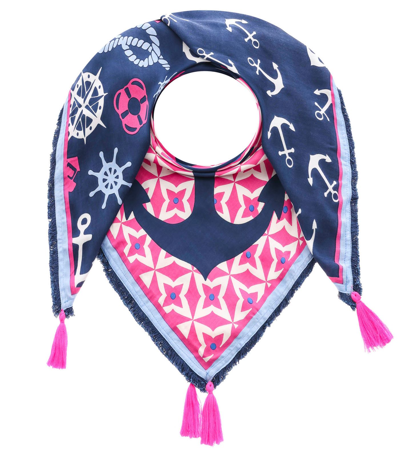 Sciarpa quadrata ZWILLINGSHERZ Sea Sun Sand con scritta "Ancore e Timoni" 3016Q-0629-5 Blu/Rosa/Bianco