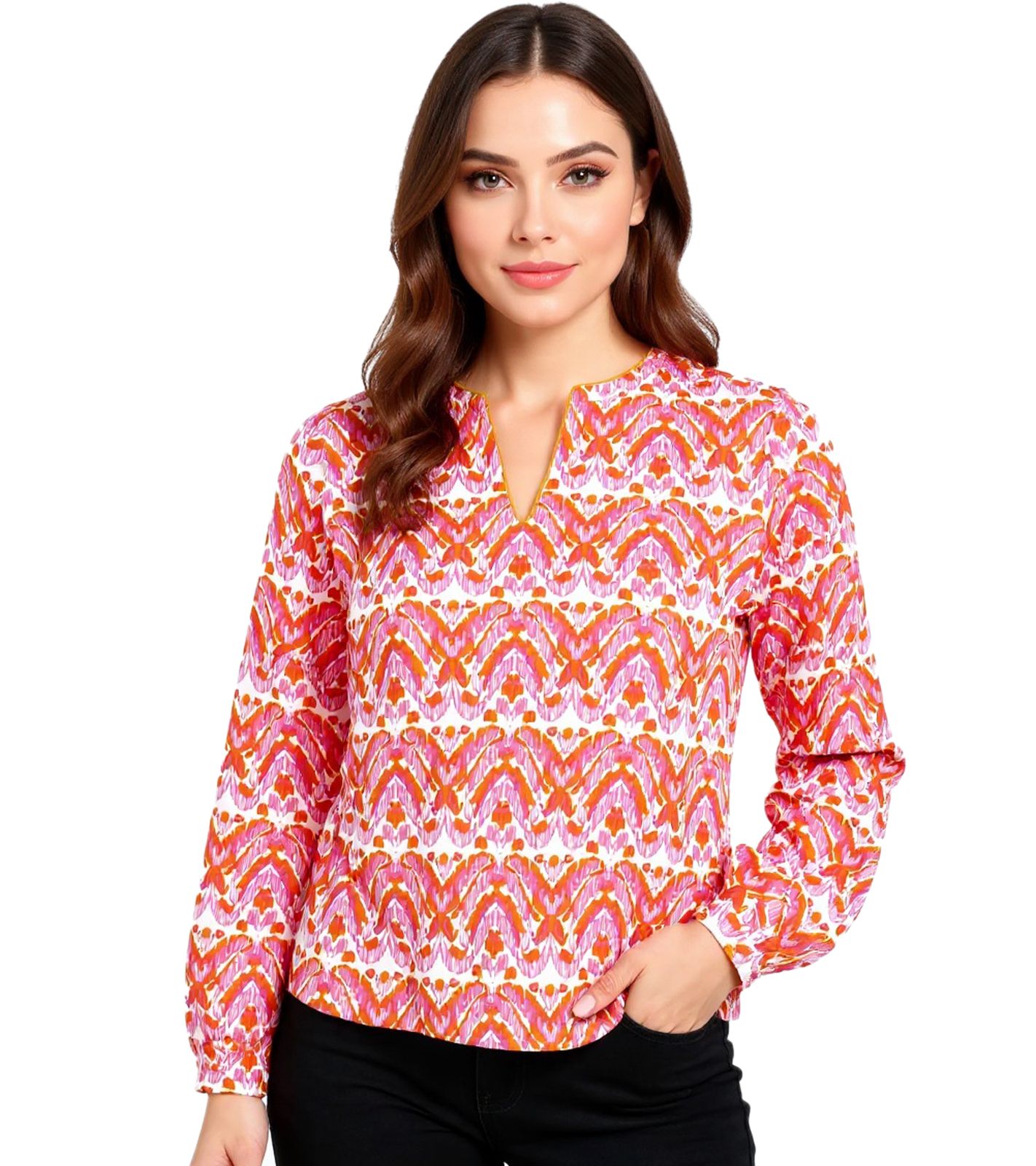 ZWILLINGSHERZ Joyful - Camicia estiva con decorazioni da donna, modello tunica, 33236, arancione/rosa/bianco o blu/rosa/bianco/verde
