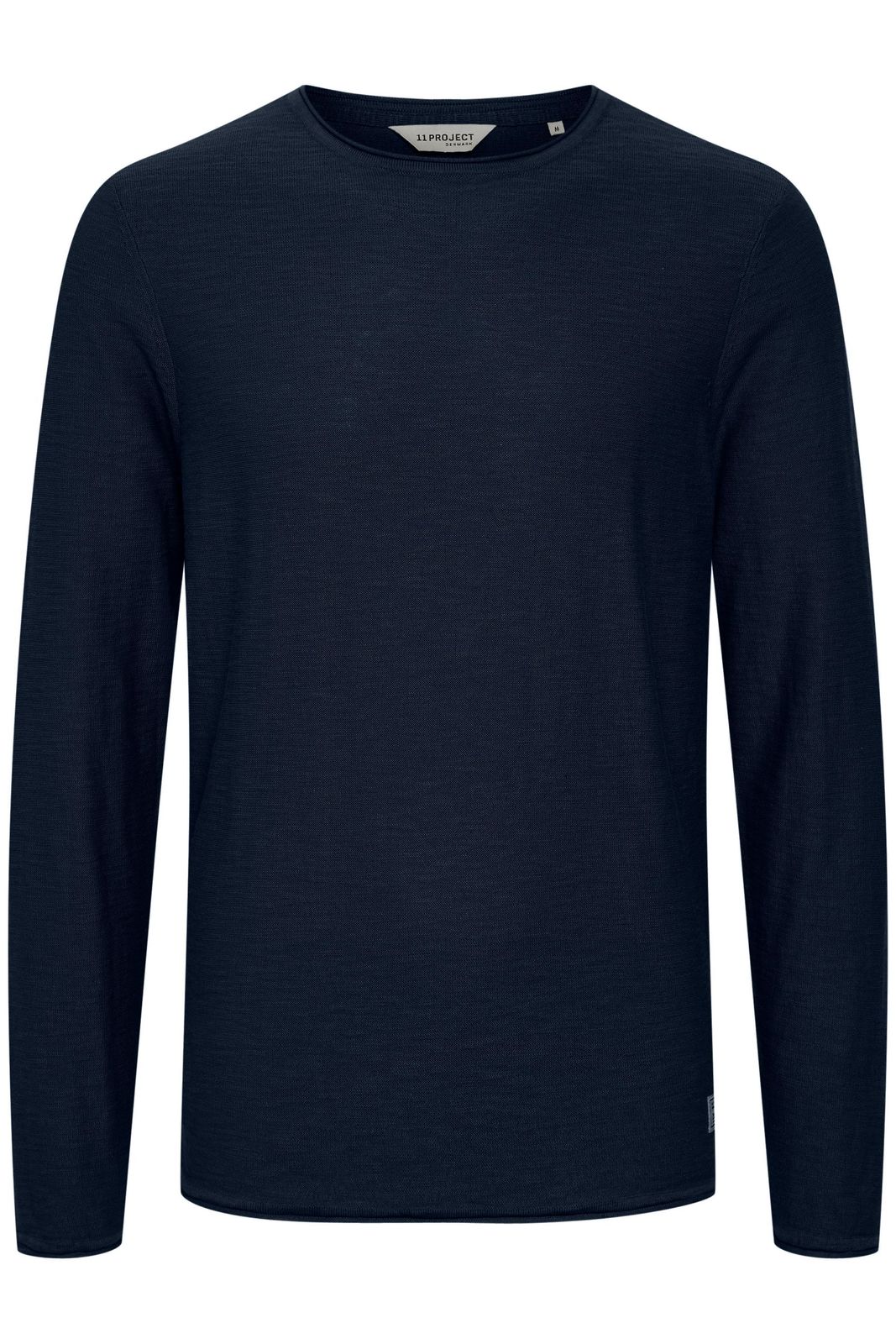 klassischer 11 PROJECT PRFriko Herren Feinstrickpullover mit Rundhals Strickpullover 20714436ME Grau oder Blau