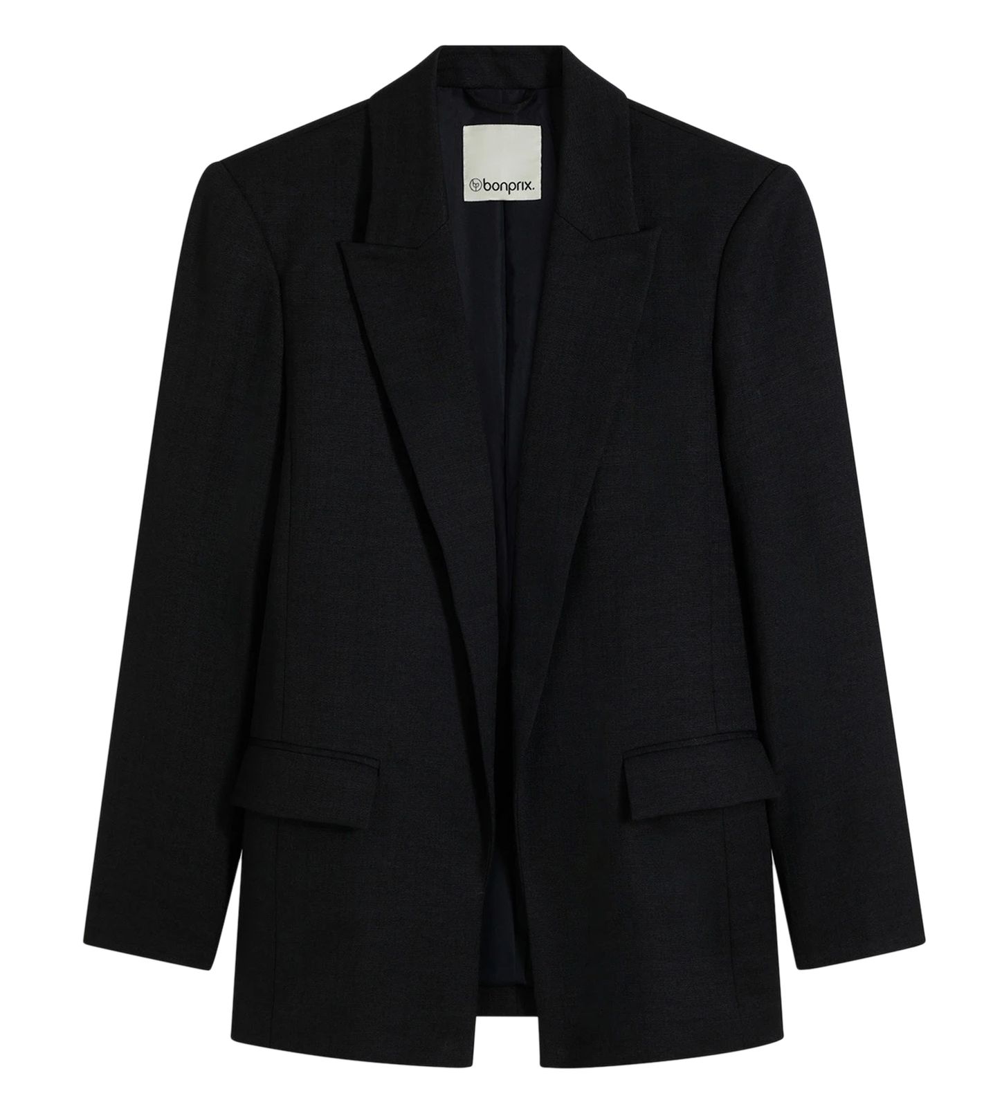 klassischer Blazer für Damen in Leinenoptik mit gestreiftem Futter Loose Fit 968952 Schwarz oder 965058 Beige