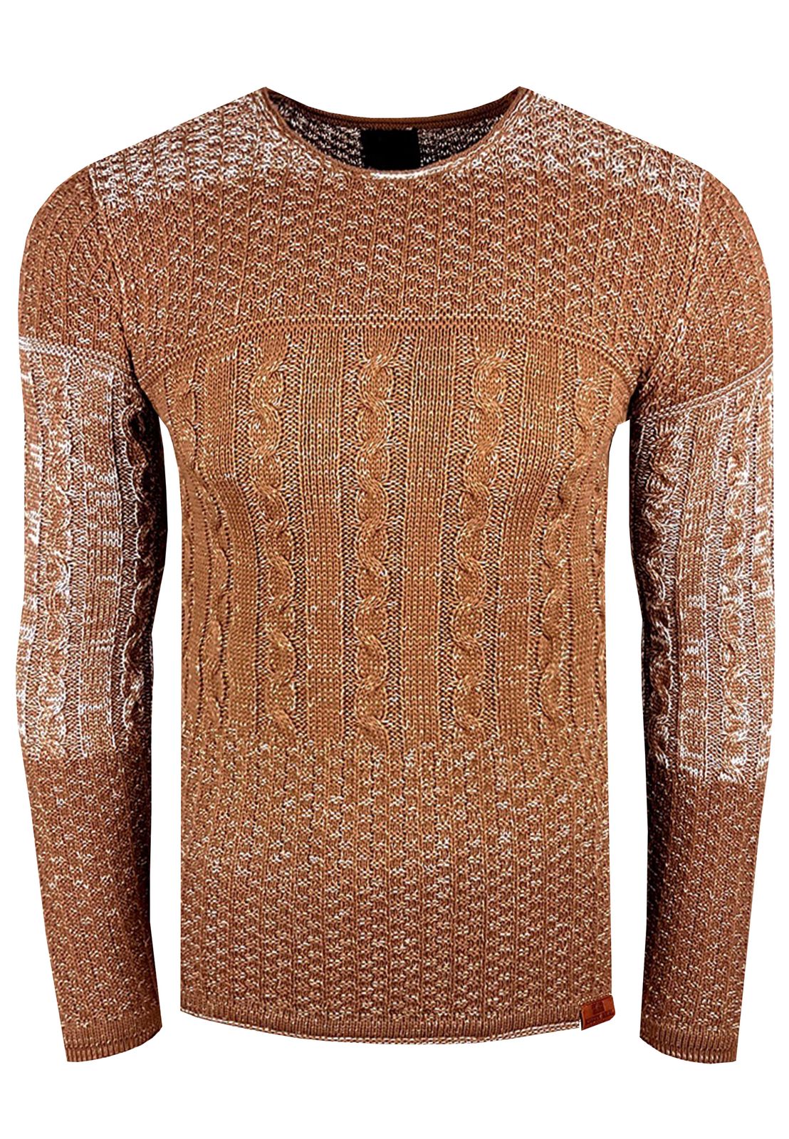 Klassischer Herren Strick-Pullover mit Zopfmuster Slim Fit Rundhals-Sweater im Strukturstrick Design 13265 Camel