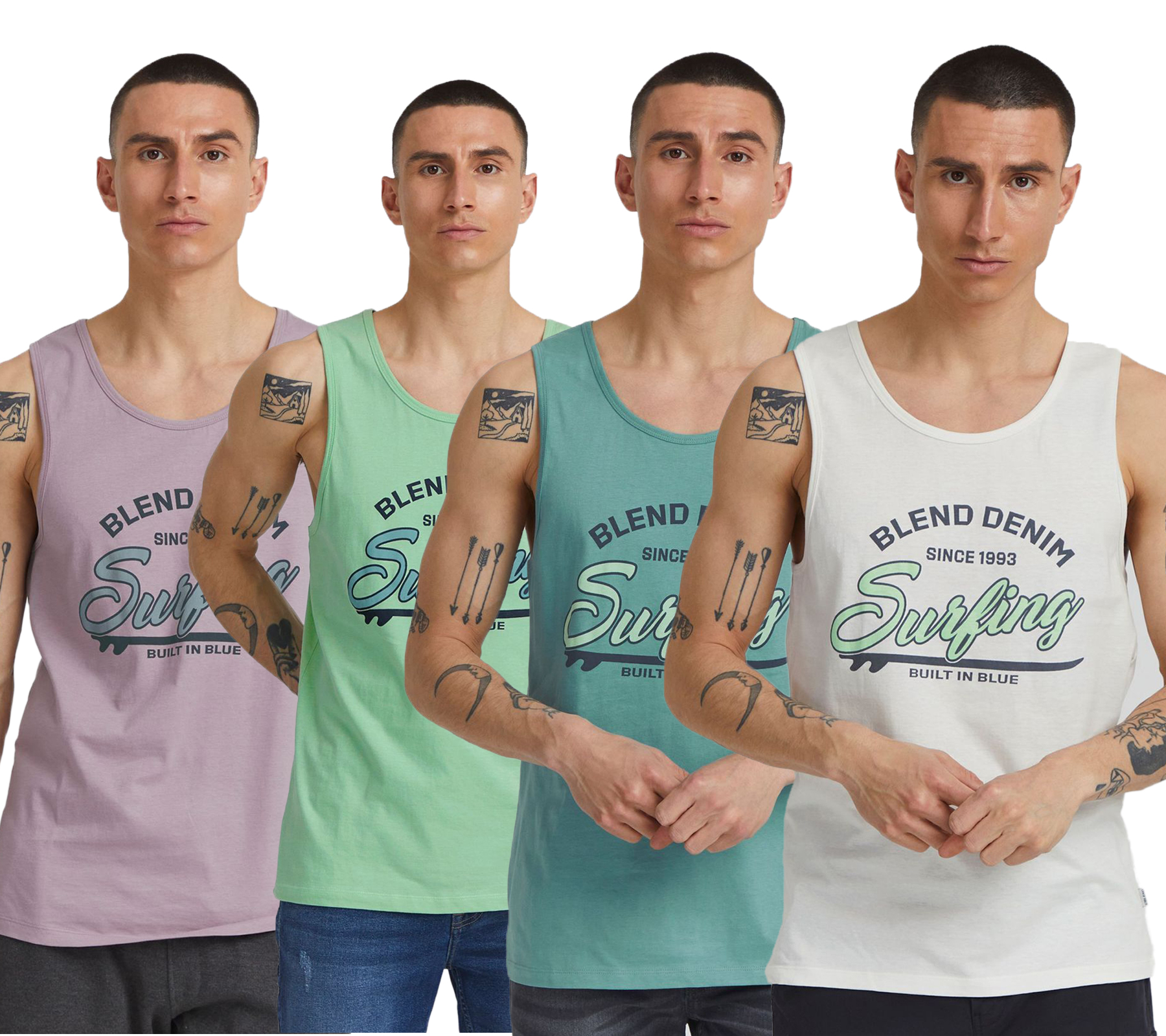 klassisches BLEND BDLingo Herren Tanktop mit Rundhals Top 20714921ME Weiß, Blau, Violett oder Türkis