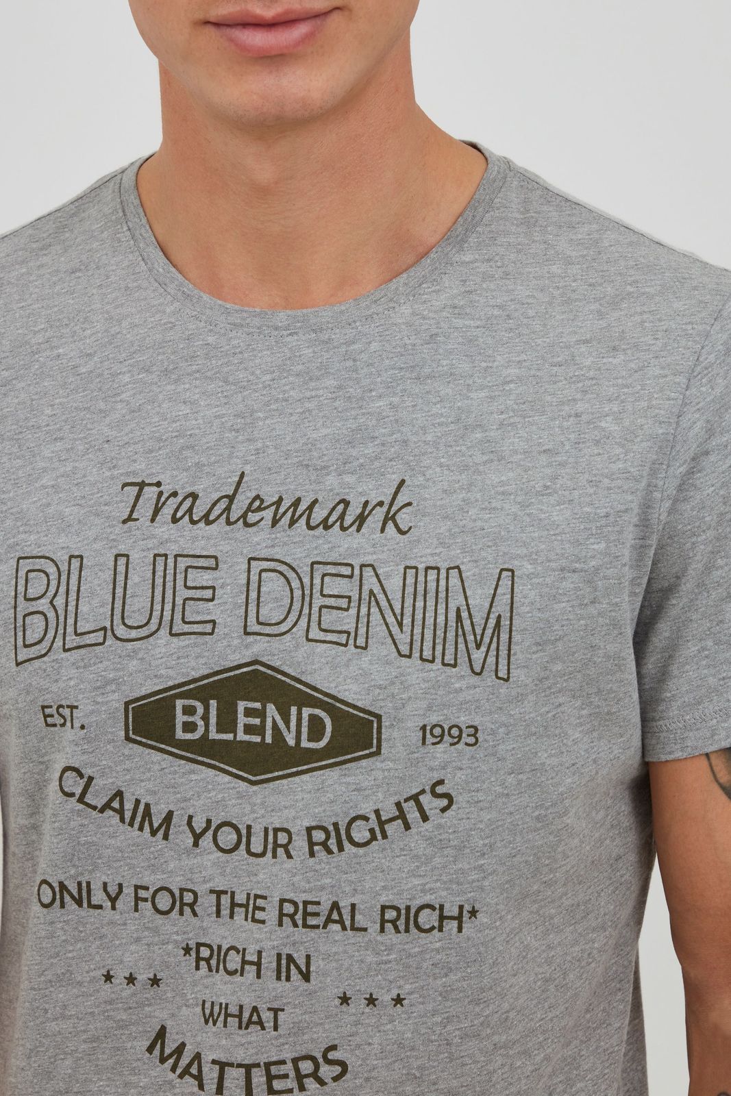 klassisches BLEND BHAdam Herren T-Shirt mit Rundhals Shirt 20714404ME-200274 Grau