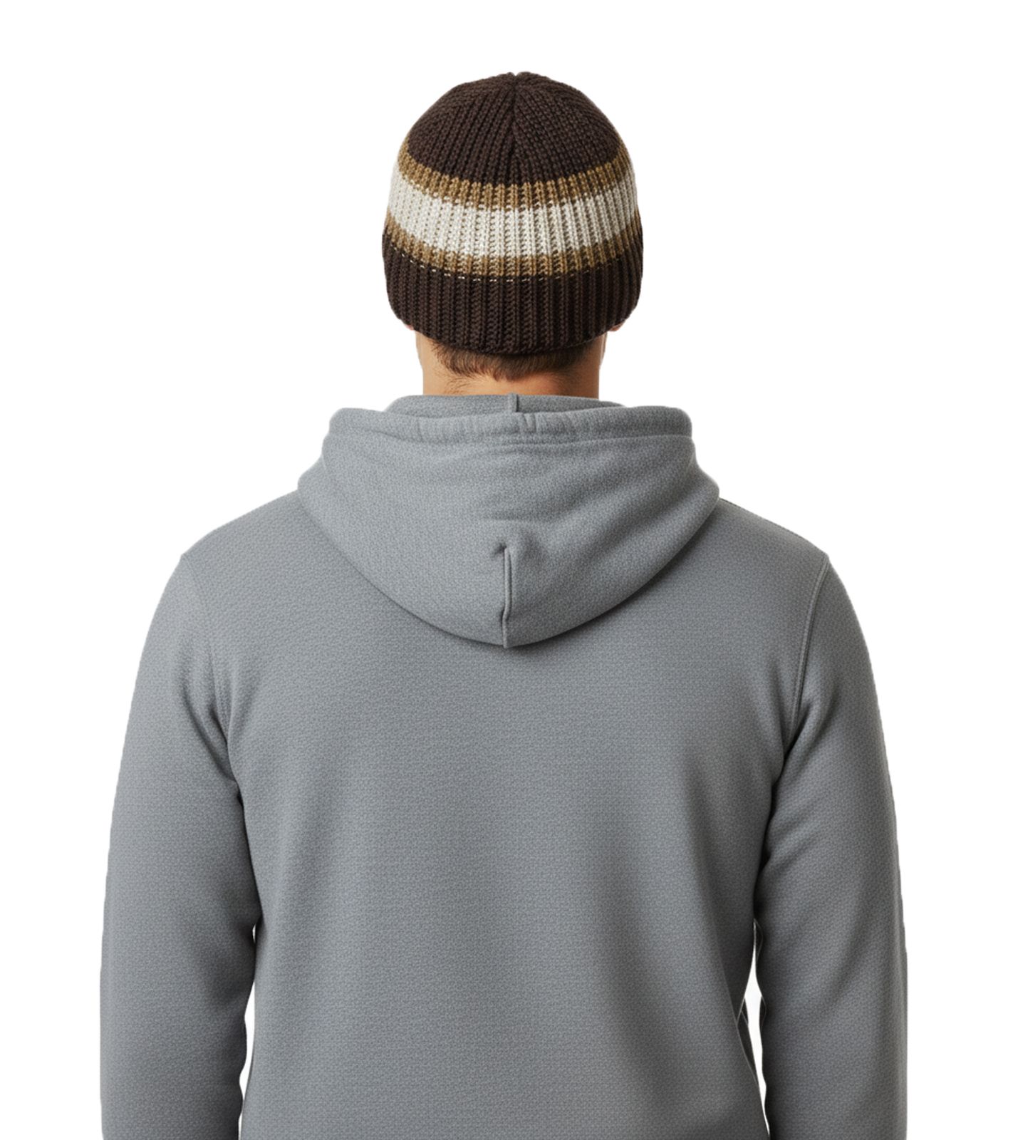 kuschelige Häkel-Mütze Winter-Mütze weiche Strick-Mütze mit Streifen Baumwoll-Mütze 7315GUY Braun/Weiß/Grün