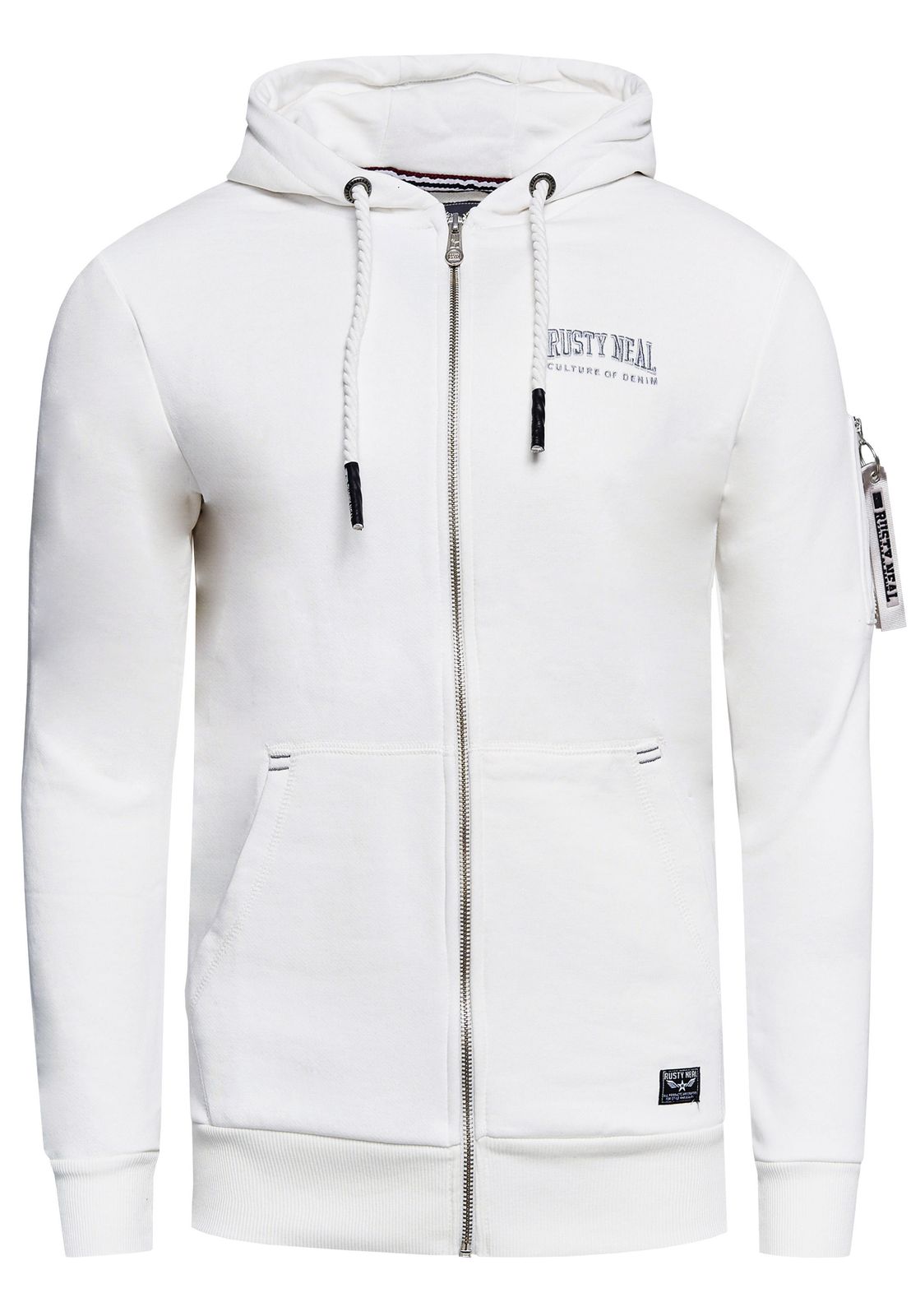 Kuschelige Sweat-Jacke für Herren mit stylischer Ärmeltasche Kapuzen-Pullover Sweater 19156 Ecru-Weiß