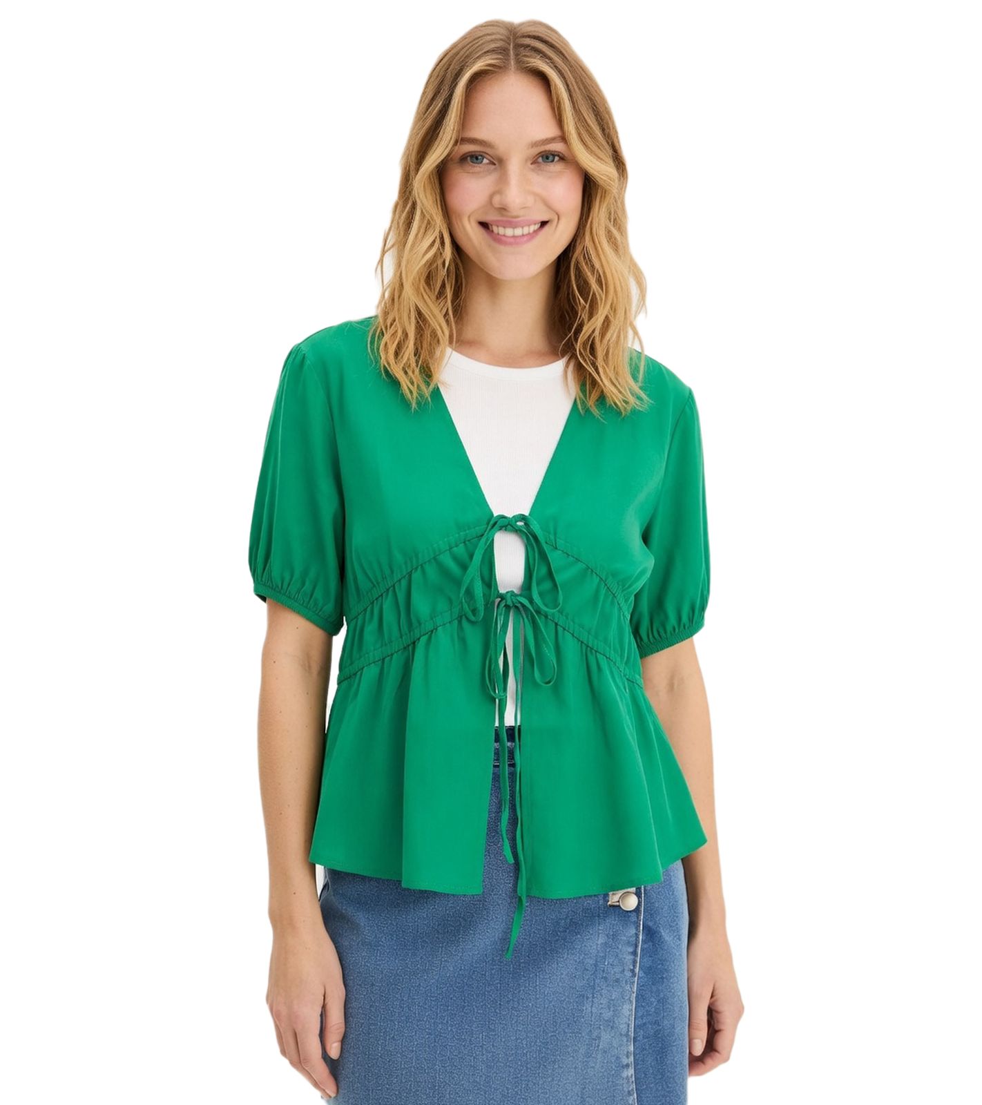 lässige Damen Bluse mit weiten Ärmeln und Bindeband Sommer-Shirt 917998 Grün