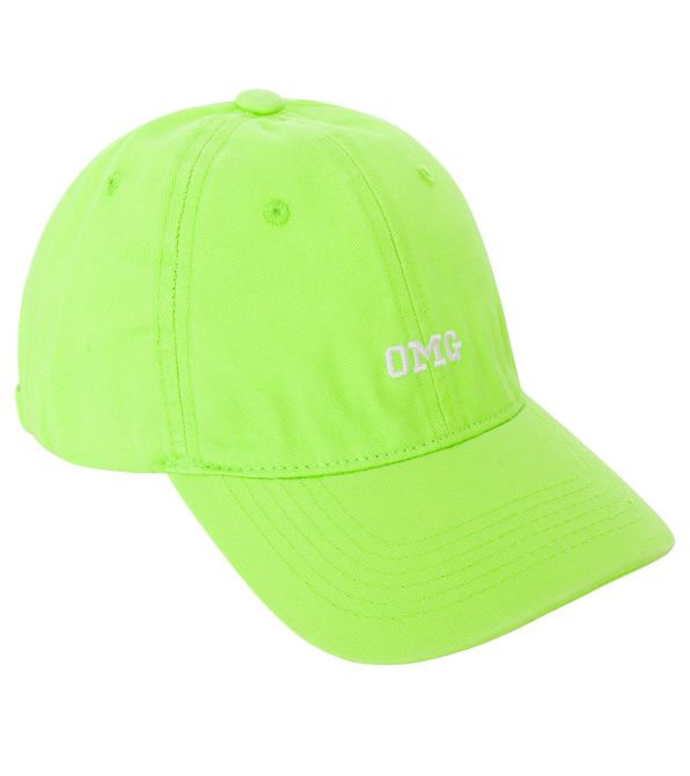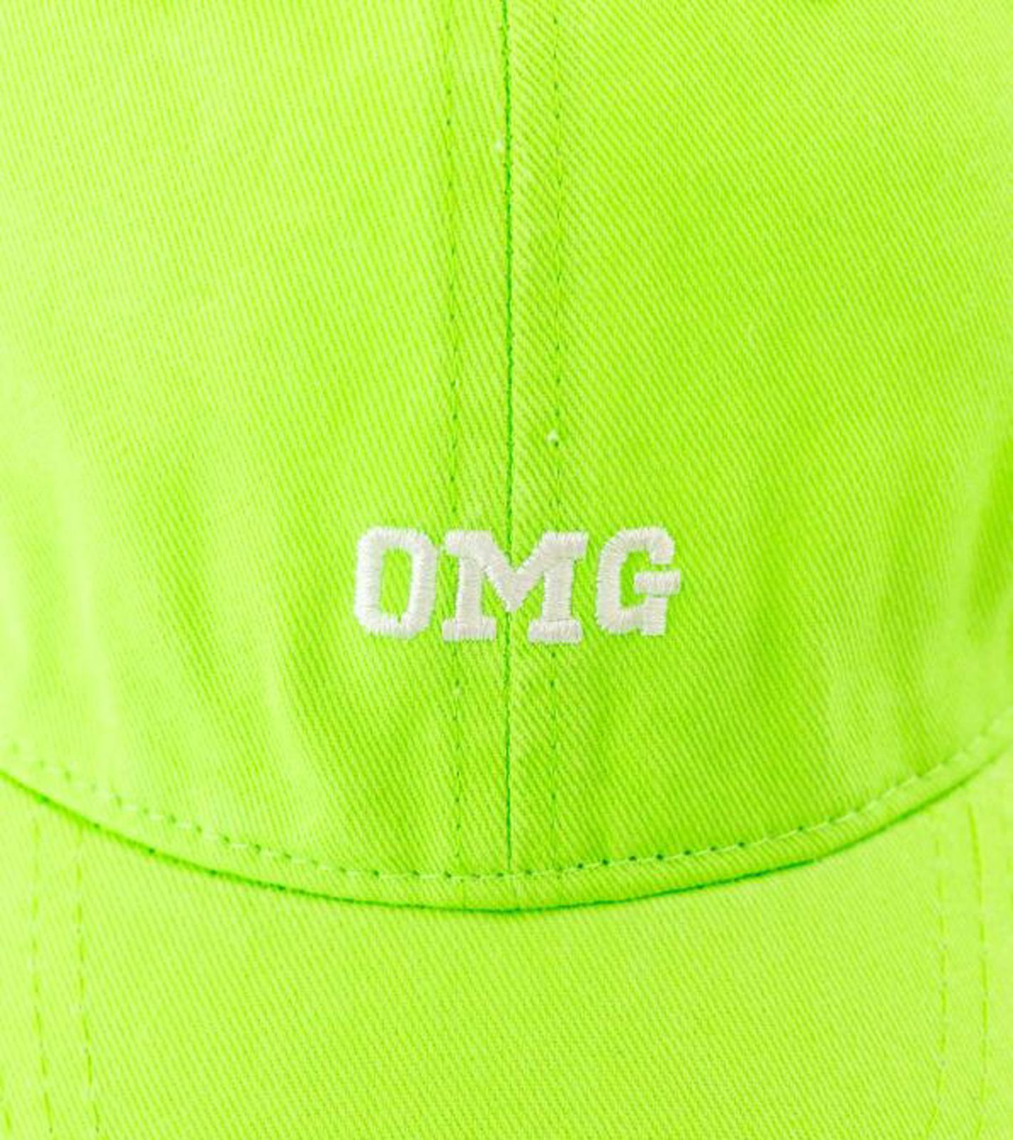 leuchtende ZWILLINGSHERZ OMG Classic Base-Cap mit OMG-Stickerei Baumwoll-Cap justierbare Cappy Schirm-Mütze 4603M K258210 Neon-Grün