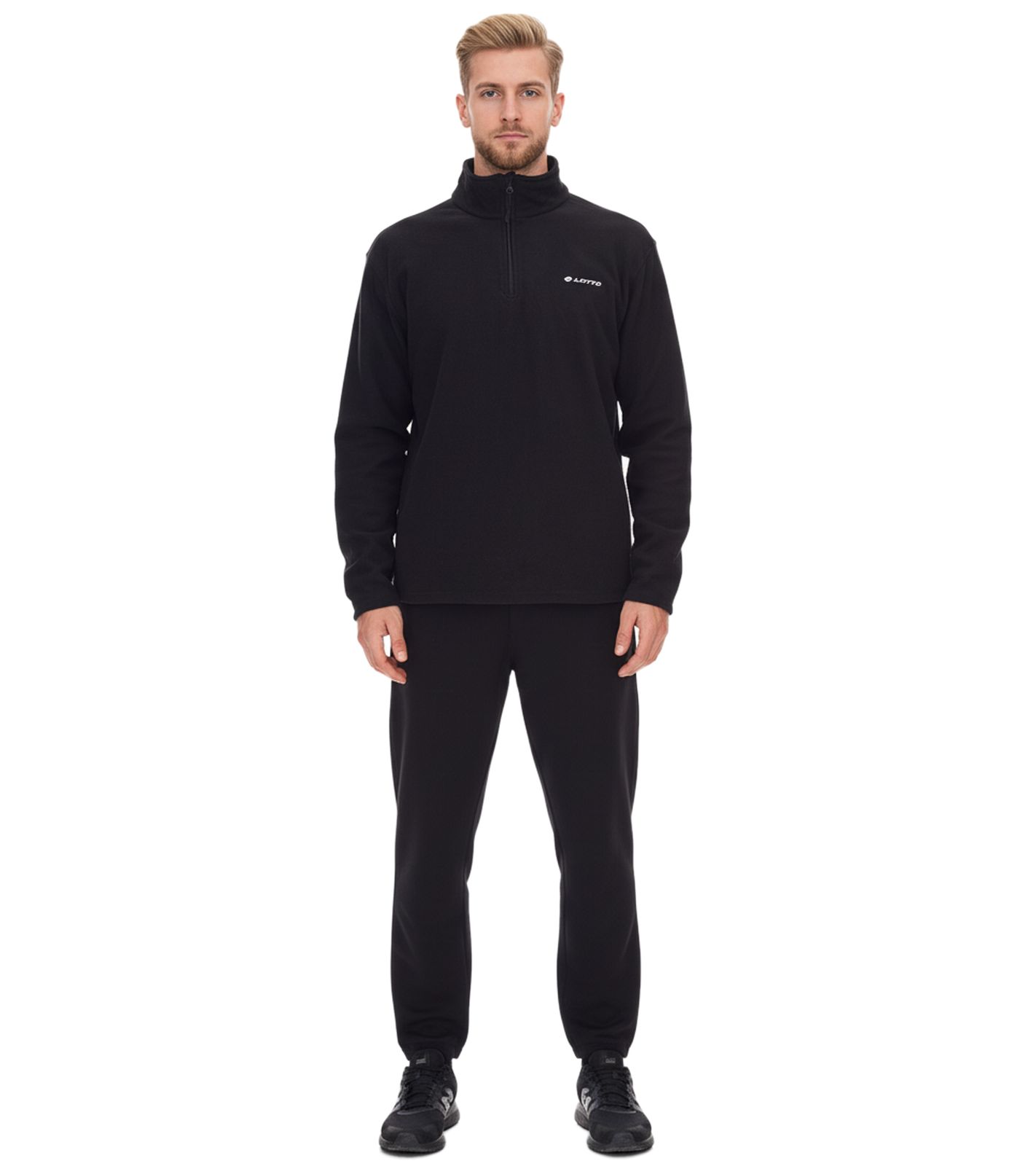 LOTTO Herren Fleece-Sweater Trainings-Pullover mit Reißverschluss Sweat-Zipper MPFX1000NET Schwarz