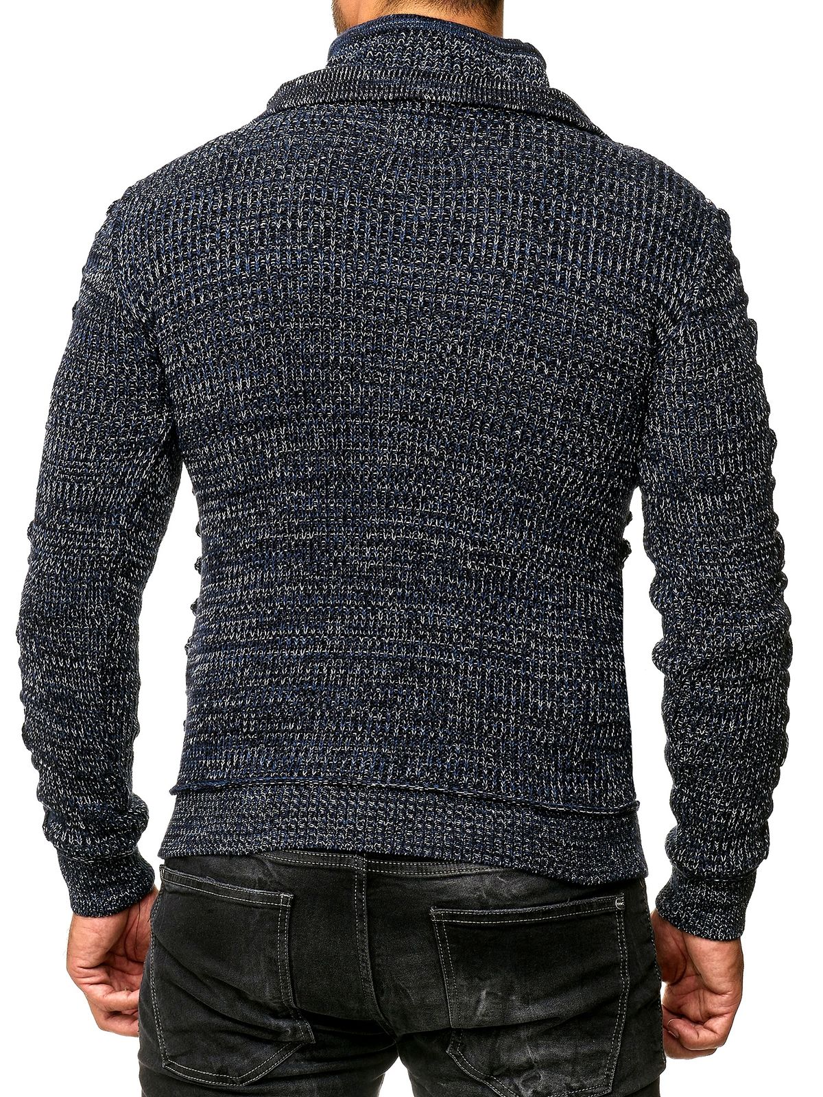 Markanter Herren Grobstrick-Pullover mit Stehkragen und Kragenverschluss Strick-Sweater mit Struktur und Raff-Optik 13320 Petrol