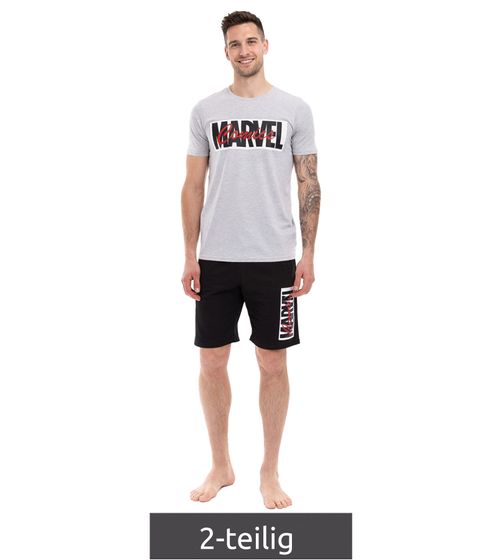 MARVEL Herren 2-teiliger Pyjama-Set mit MARVEL-Motiv Sommer-Pyjama kurzer Schlafanzug Homewear Grau/Schwarz