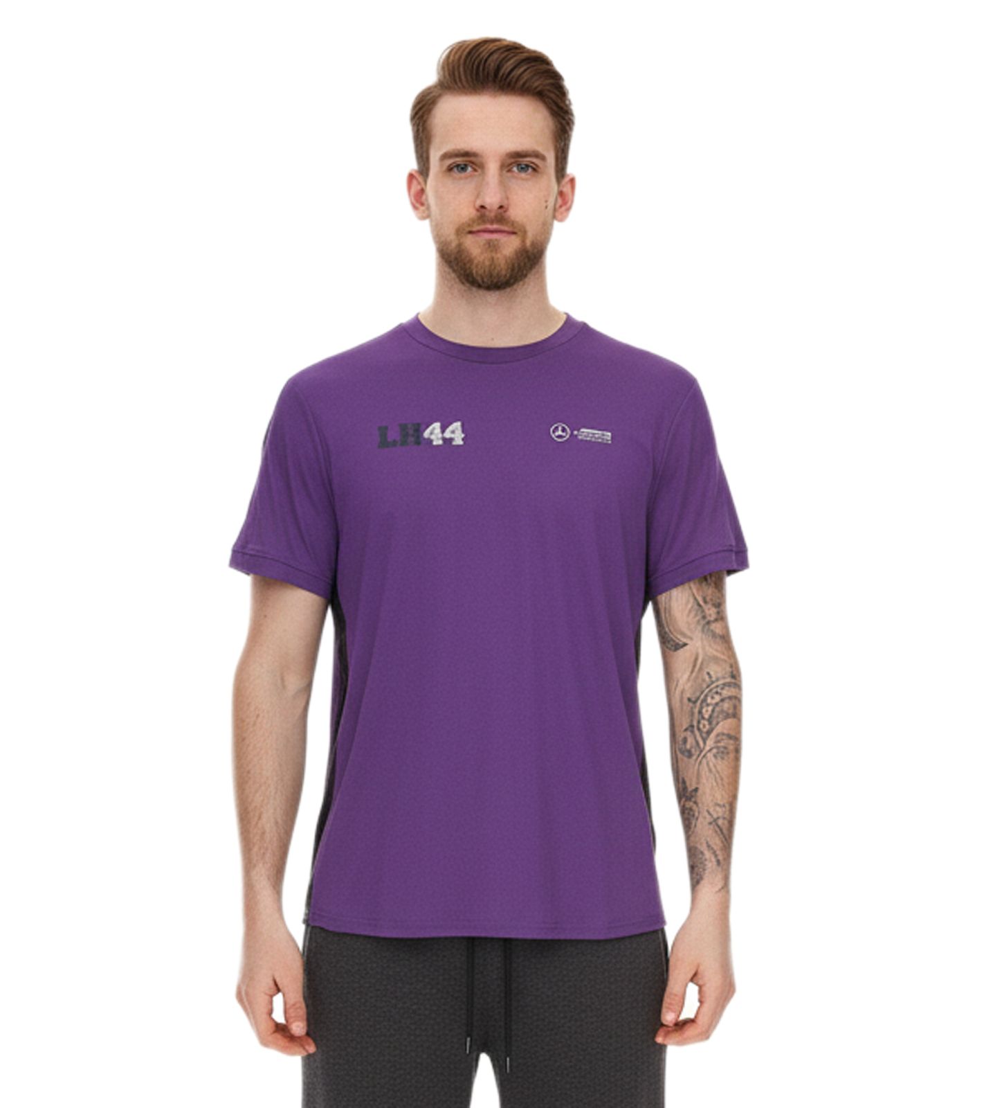 Mercedes-Benz AMG Petronas F1 MAPF1 Portrait oder Logo Herren Baumwoll-Shirt mit George Russel Print Rundhals-Shirt 701222296-701222304 Blau oder Lila