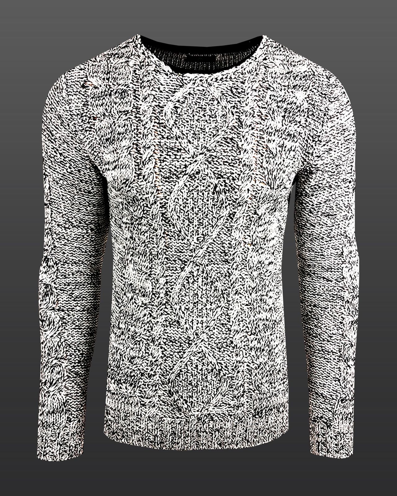 Moderner Herren Rundhals-Pullover im kontrastfarbigem Design Sweater 6234 Weiß