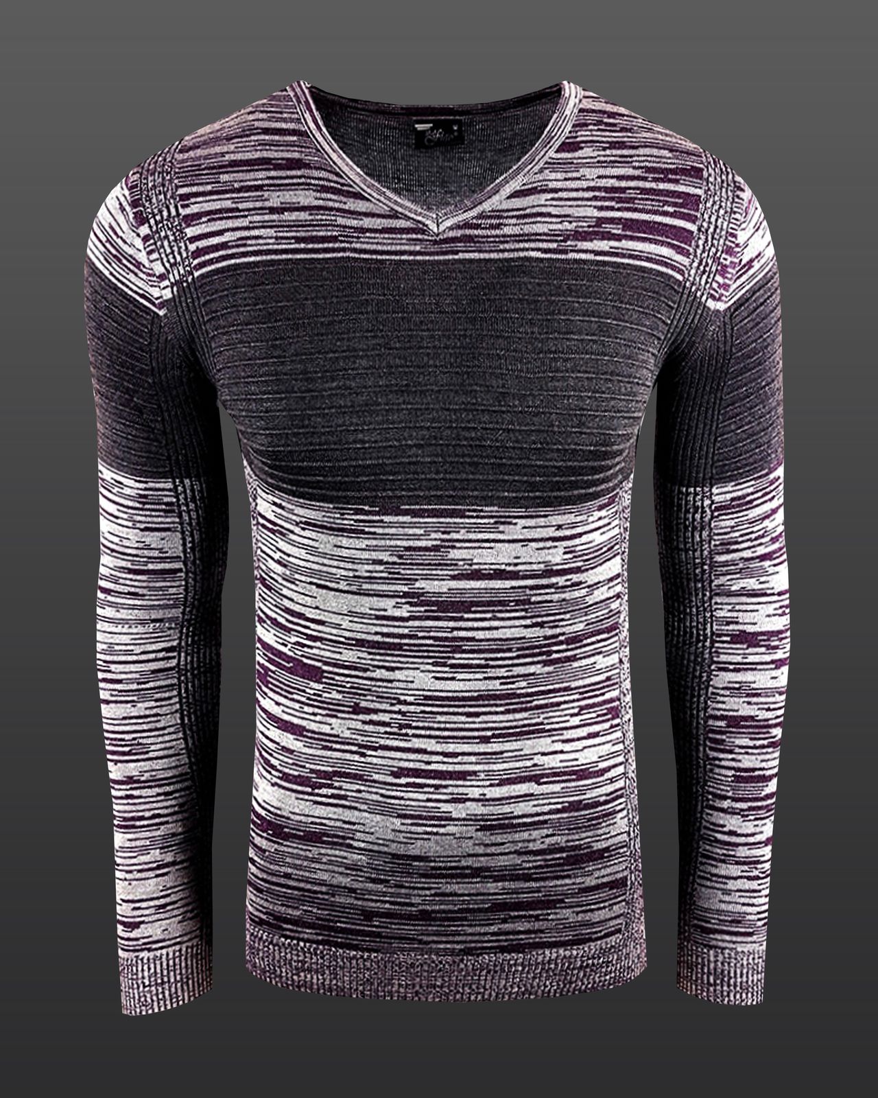 Moderner Herren Strick-Pullover im Colorblock Slim Fit V-Ausschnitt Sweater 6285 Bordeaux/Braun