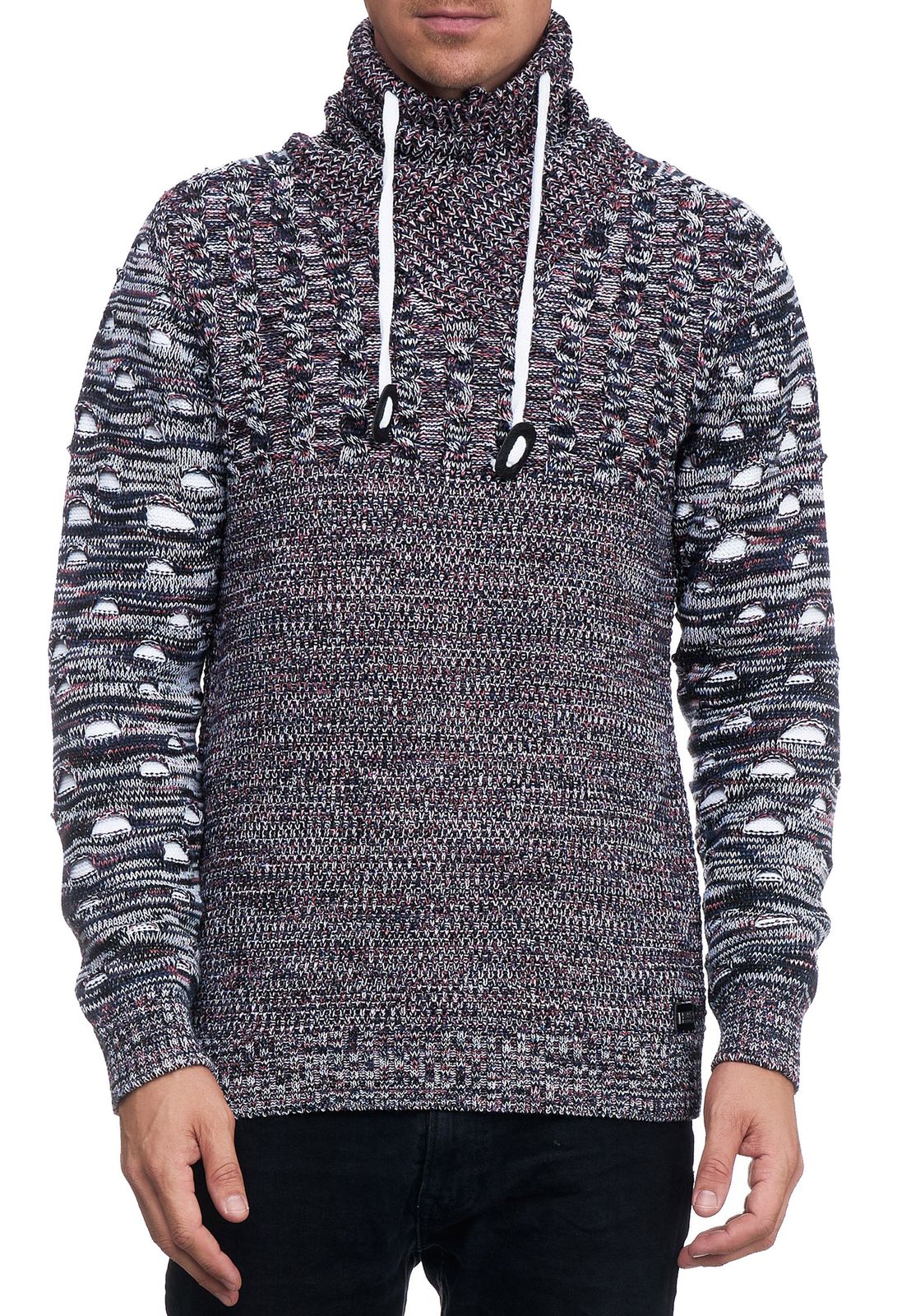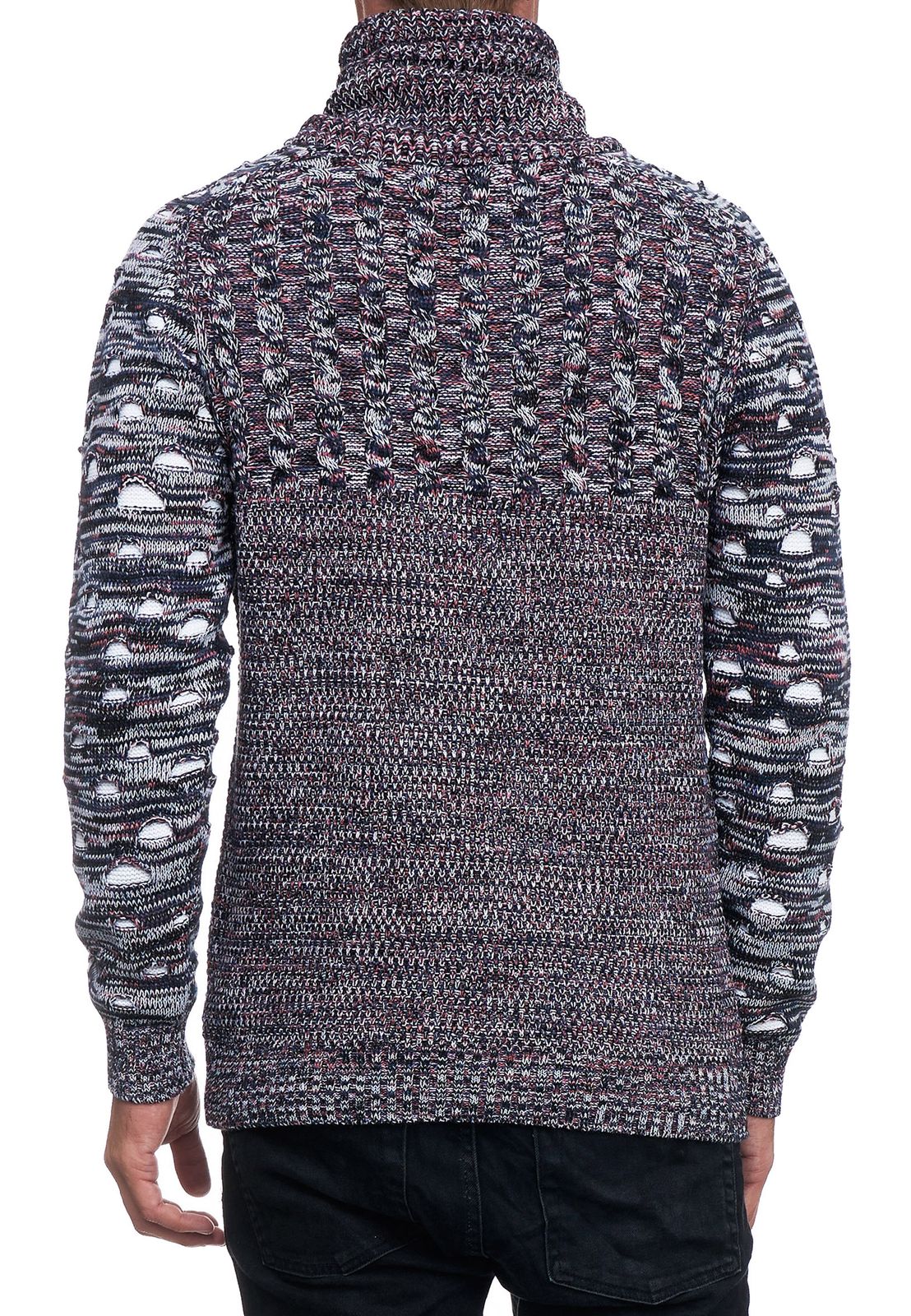 Moderner Herren Strick-Pullover mit Rollkragen und Kontraststrick Struktur-Sweater 13366 Indigo