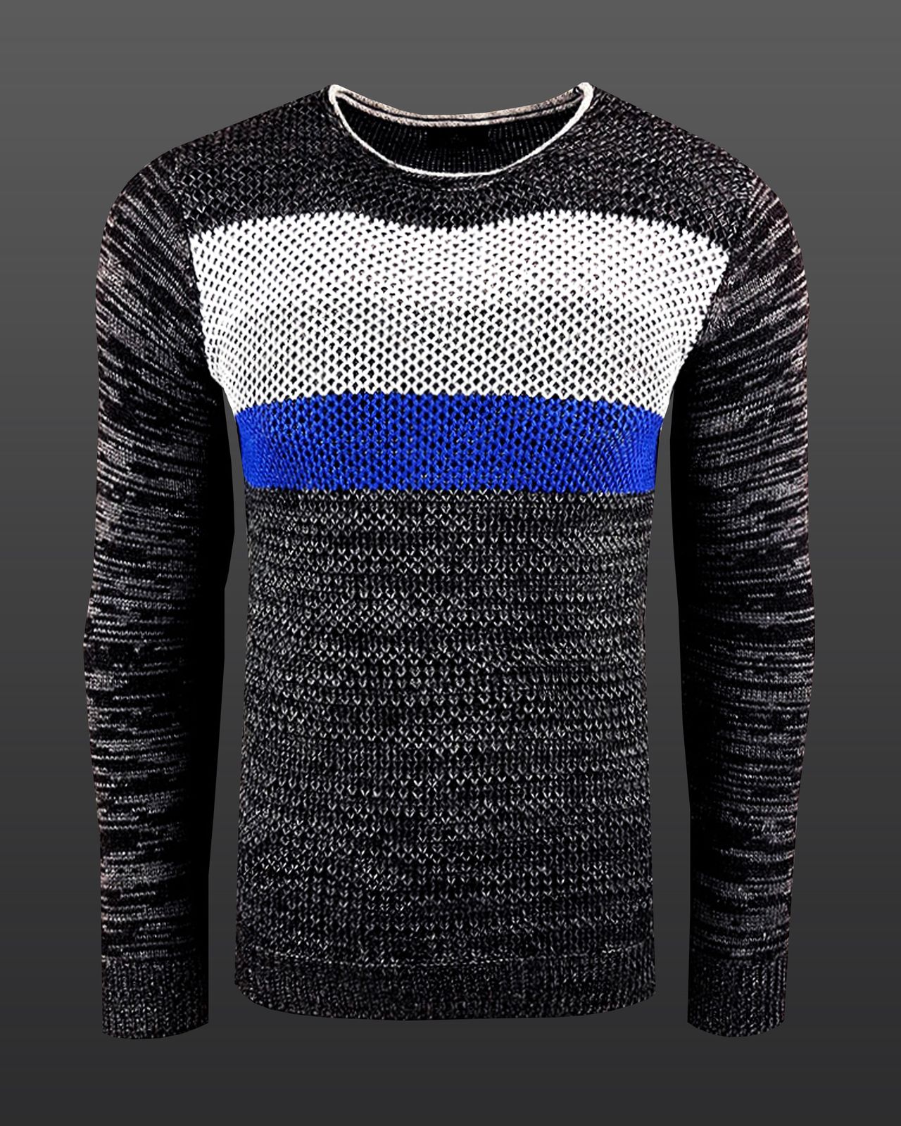 Moderner Herren Strickpullover im Colorblock Slim Fit Rundhals-Sweater 6272 Anthrazit/Grau/Blau