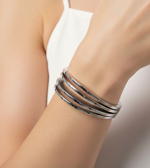 Modernes Calvin Klein Damen Edelstahl-Armband im geschwungenen Design Arm-Schmuck Handgelenk-Schmuck KJ3DMD0801 Silber