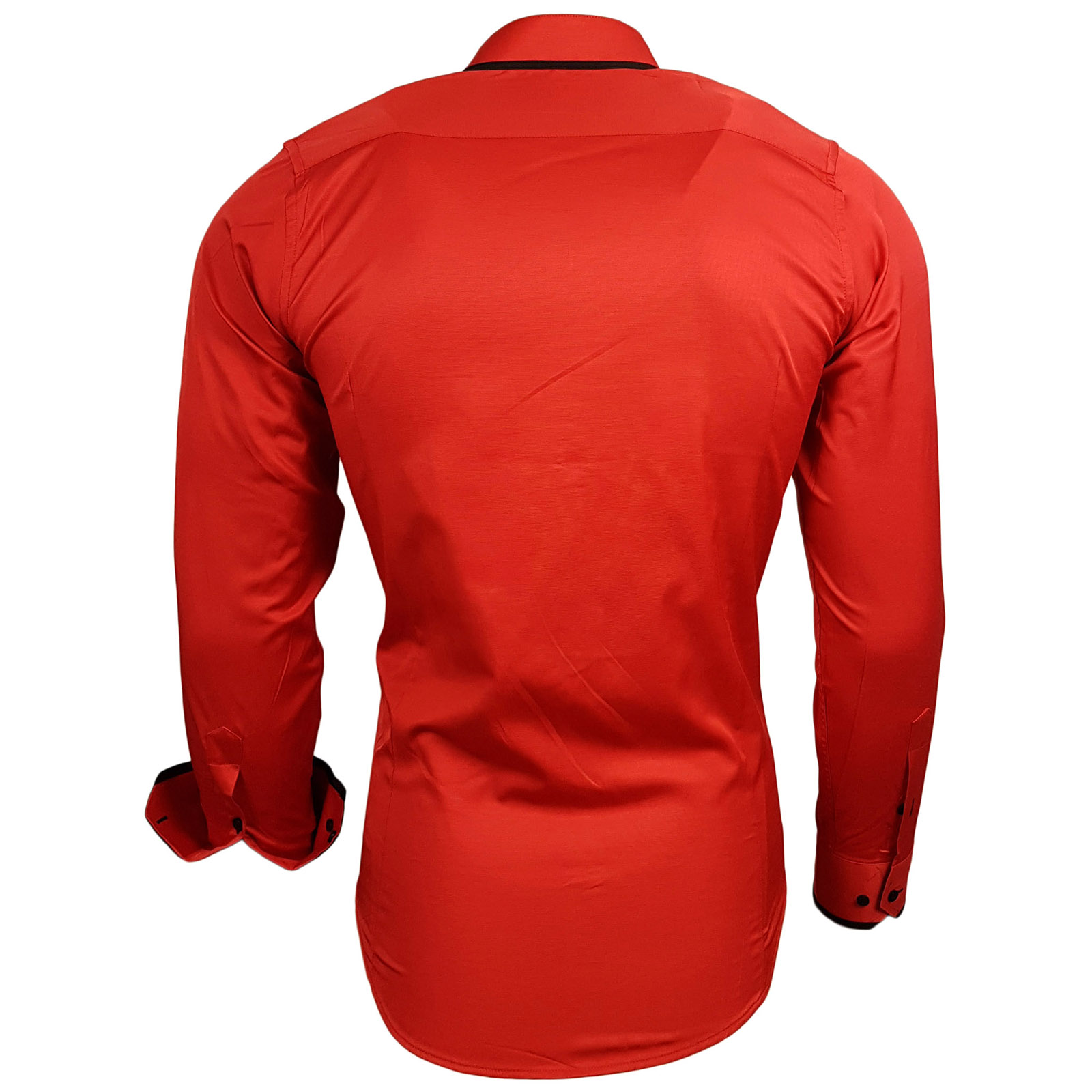 Modernes Langarm-Hemd für Herren Ausgeh-Shirt mit Mao-Kragen Business-Hemd 11014 Rot