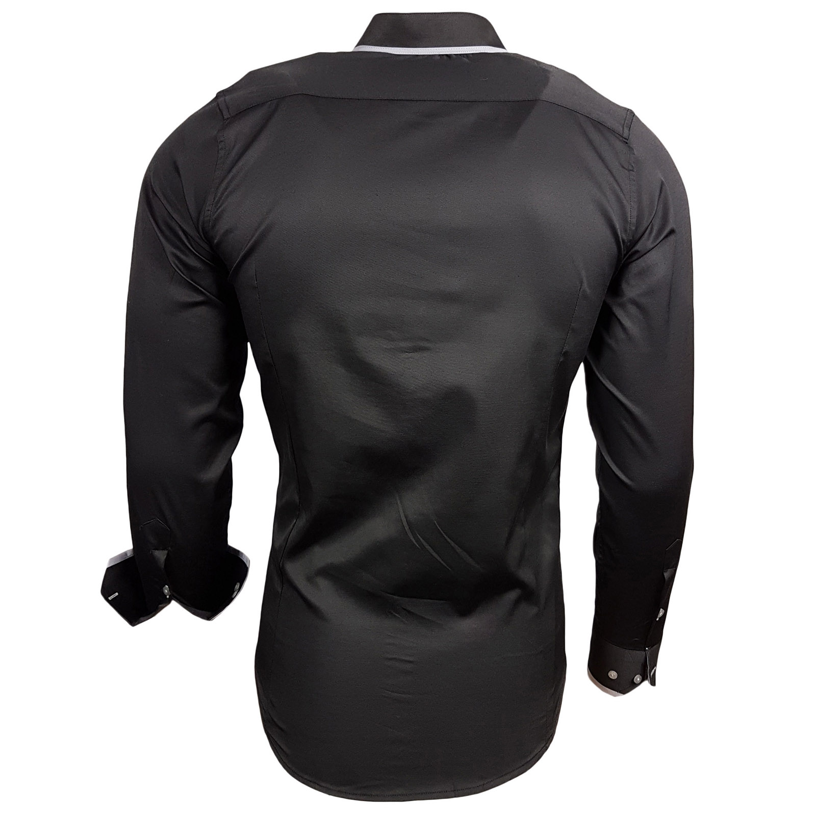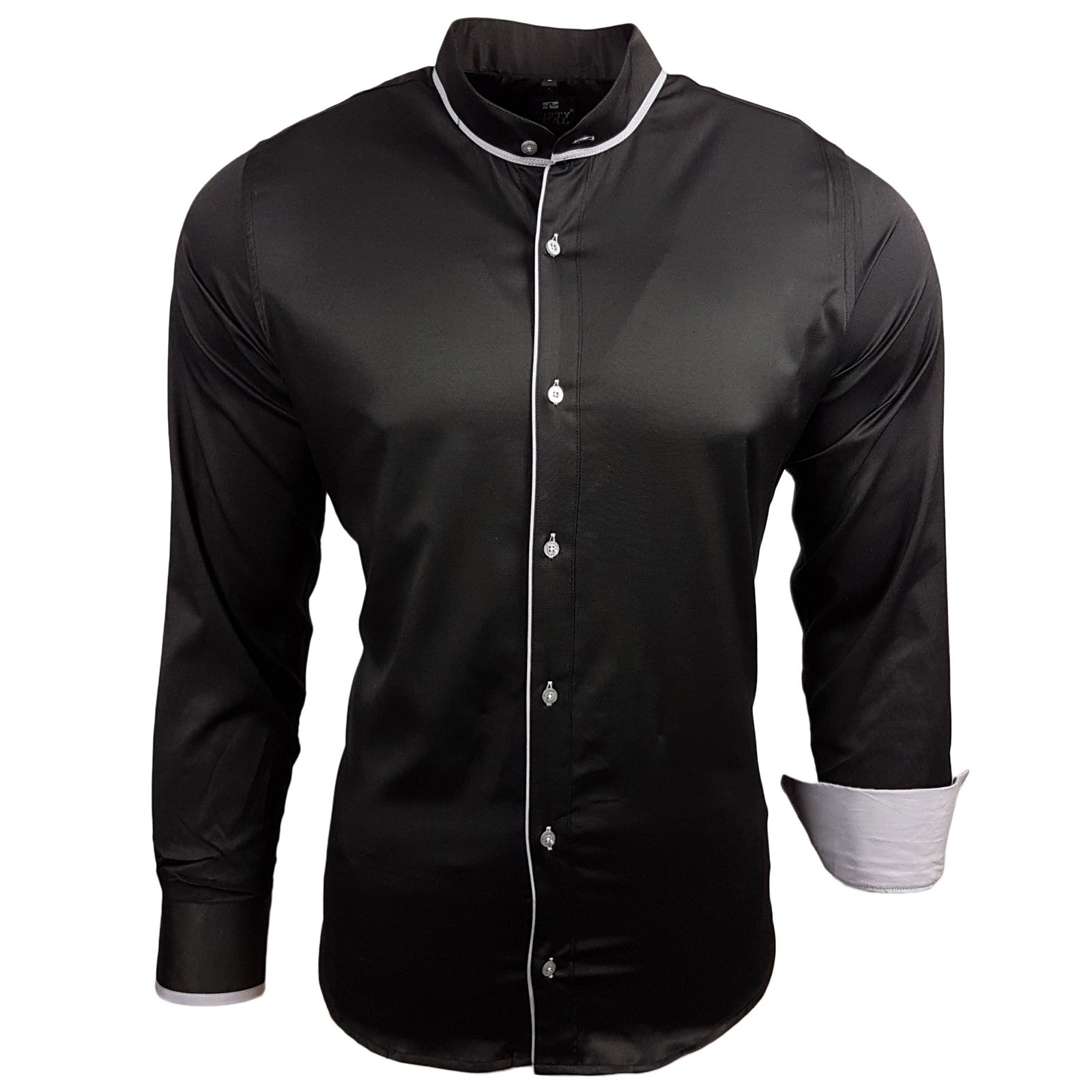Modernes Langarm-Hemd für Herren Ausgeh-Shirt mit Mao-Kragen Business-Hemd 11014 Schwarz