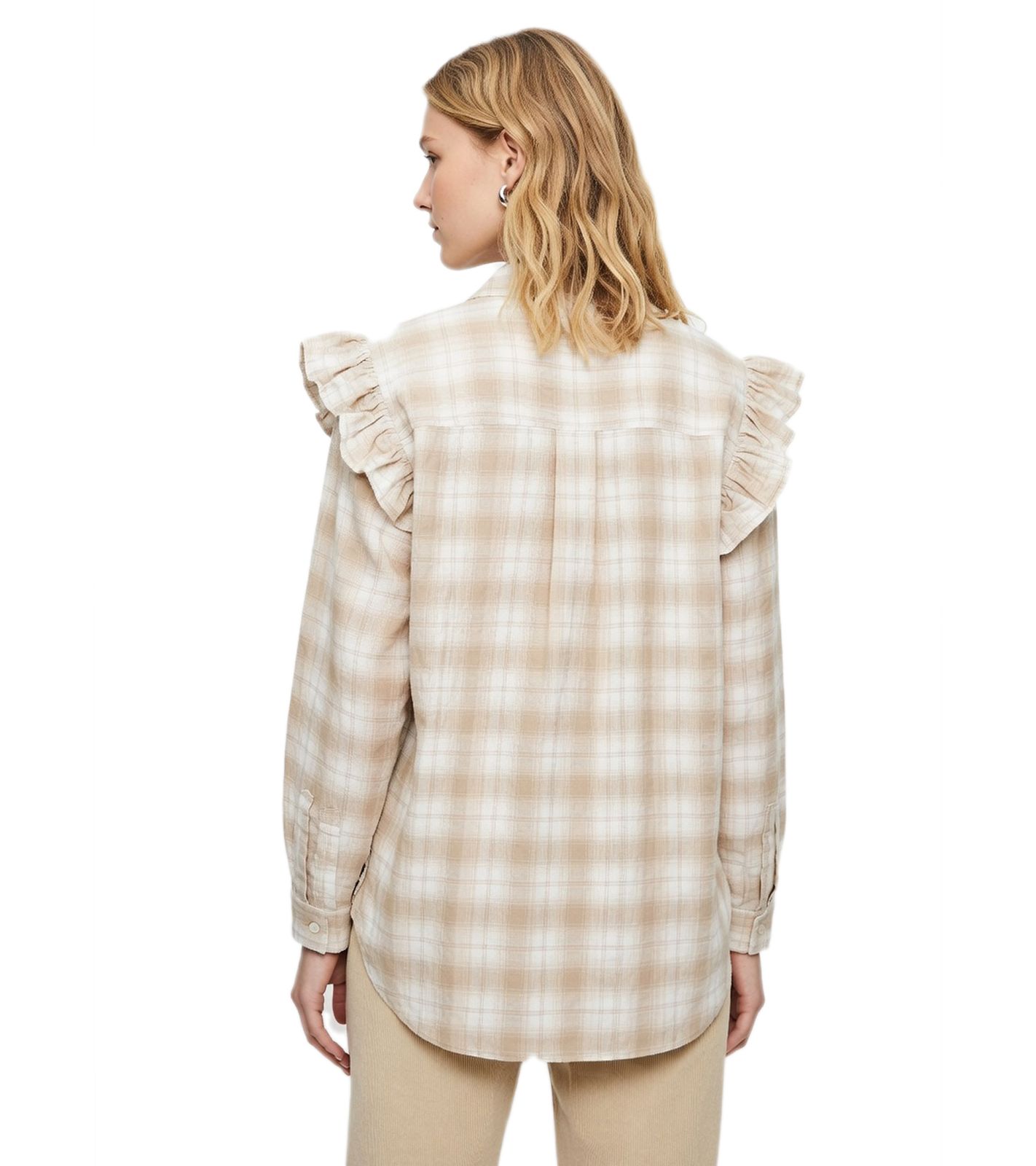 modische Damen Hemd-Bluse karierte Sommer-Bluse mit Volant 976369 Beige/Braun