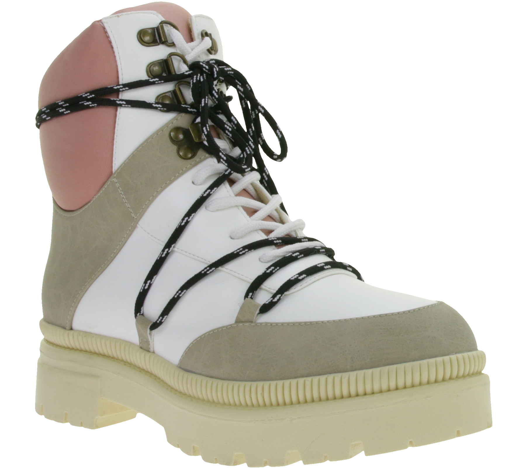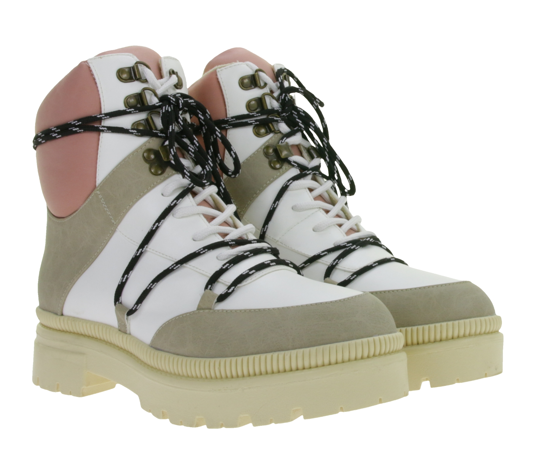 Modische Damen Stiefelette gefütterte Schnür-Boots Winter-Schuhe Desert-Boots 969448 Beige/Weiß/Rosa