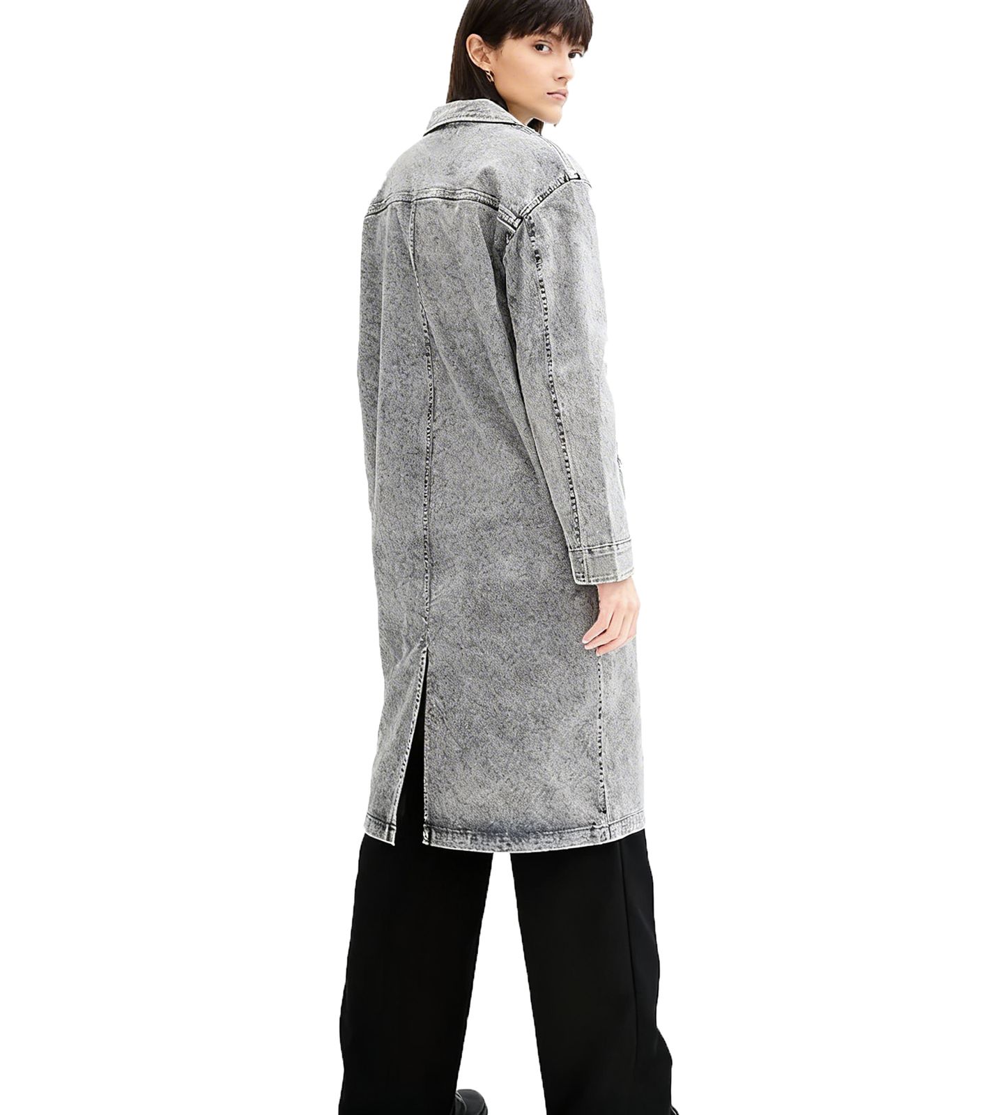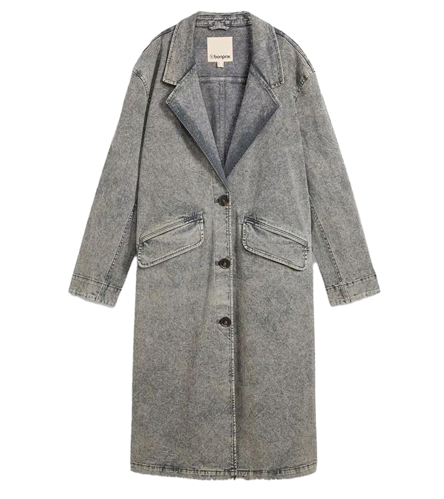 modischer Damen Jeans-Mantel weit geschnittene Frühlings-Jacke Baumwoll-Mantel 937002 Grau-washed