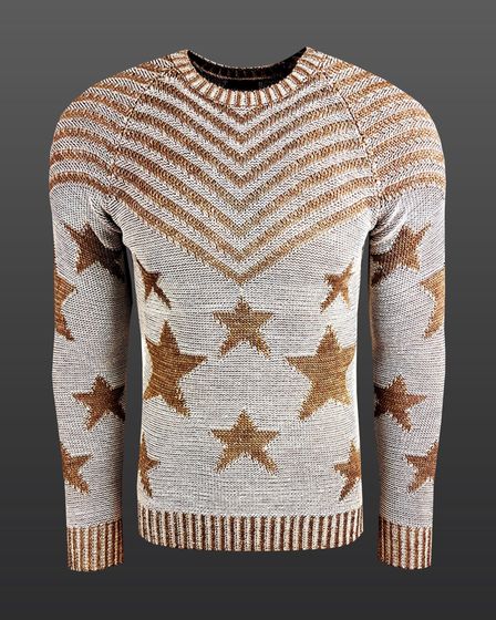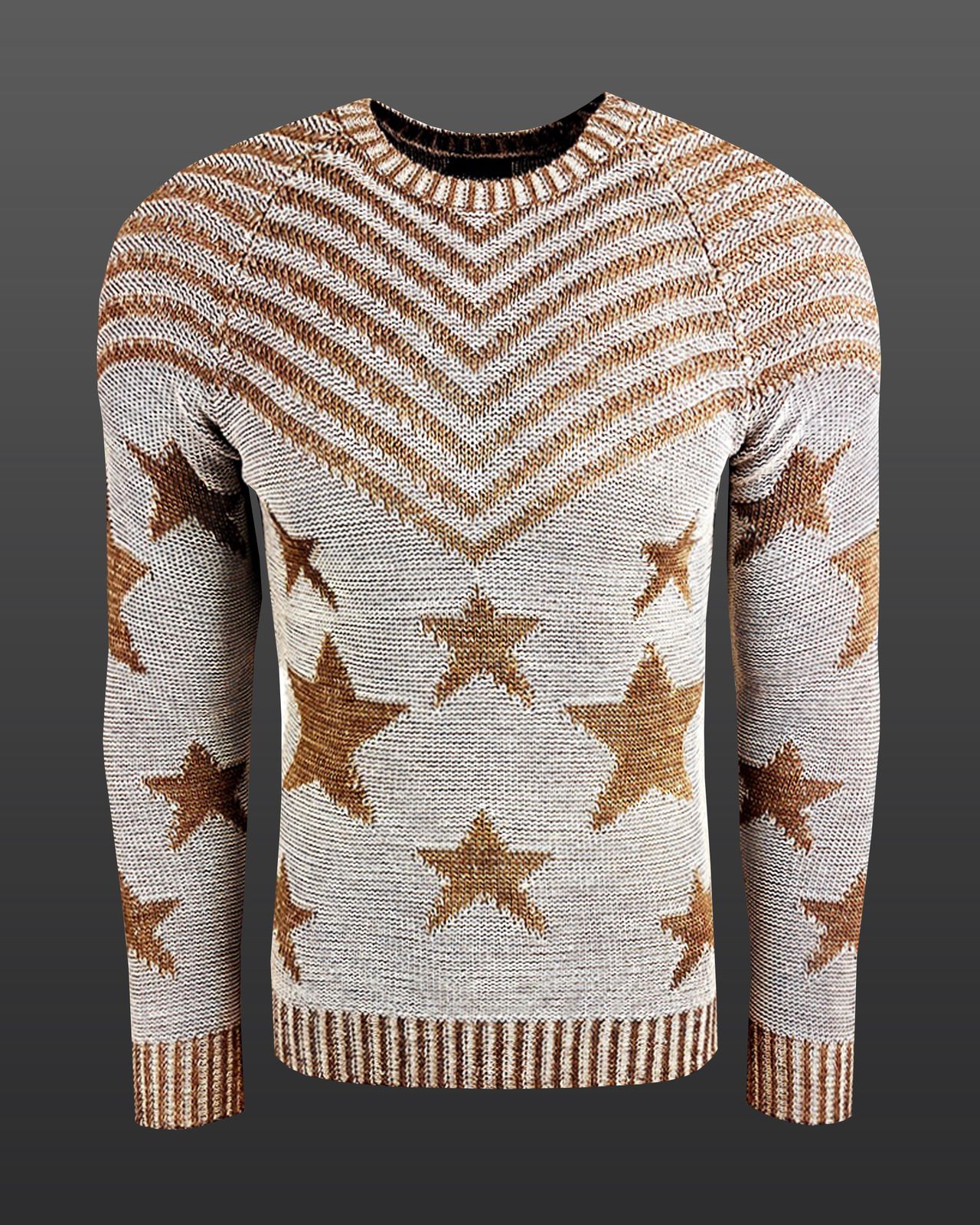 Modischer Herren Rundhals-Pullover im "USA Stars & Stripes"-Design Strick-Sweater 6263 Beige
