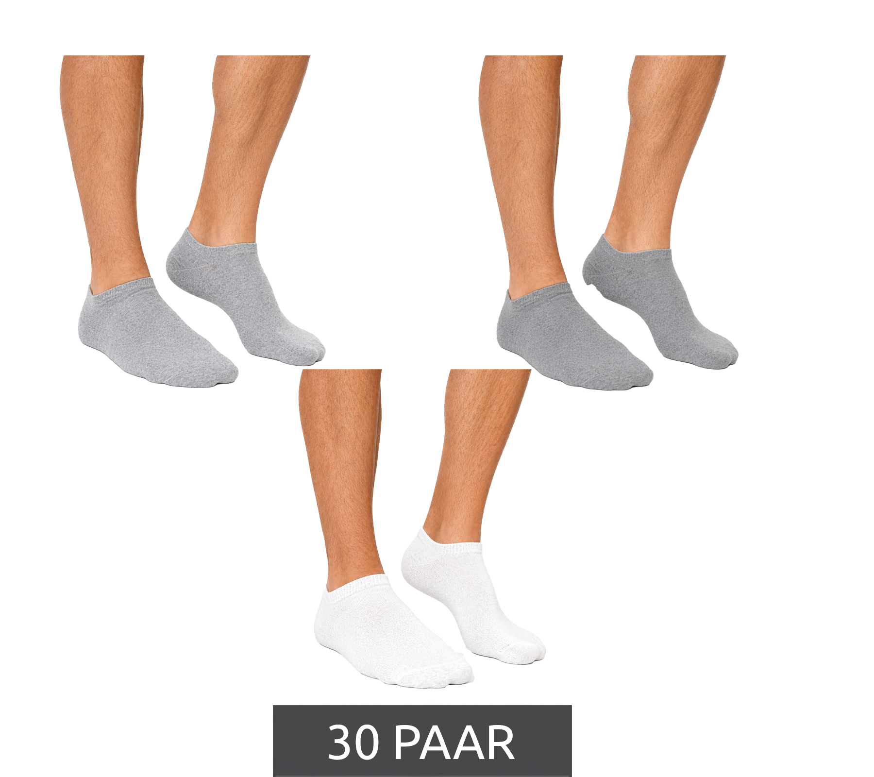 nachhaltige 30 Paar Herren Baumwoll-Socken schlichte Sneaker-Socken Kurz-Socken Strümpfe Grau/Weiß/Hell-Grau