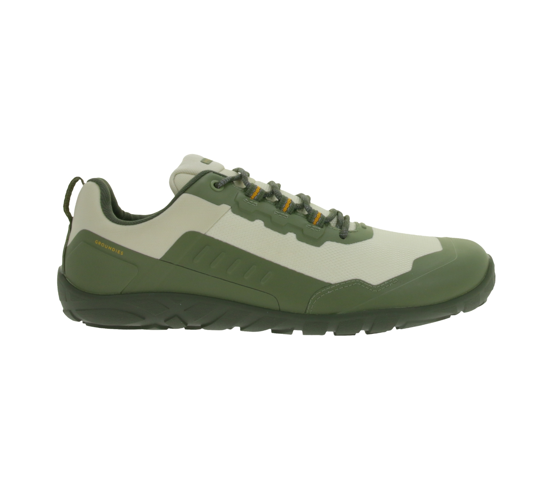 nachhaltige GROUNDIES Barfußschuhe All Terrain Low 2.0 wasserabweisender Herren Trekking Sneaker mit TrueSense Sohle GND-230257-10 Khaki