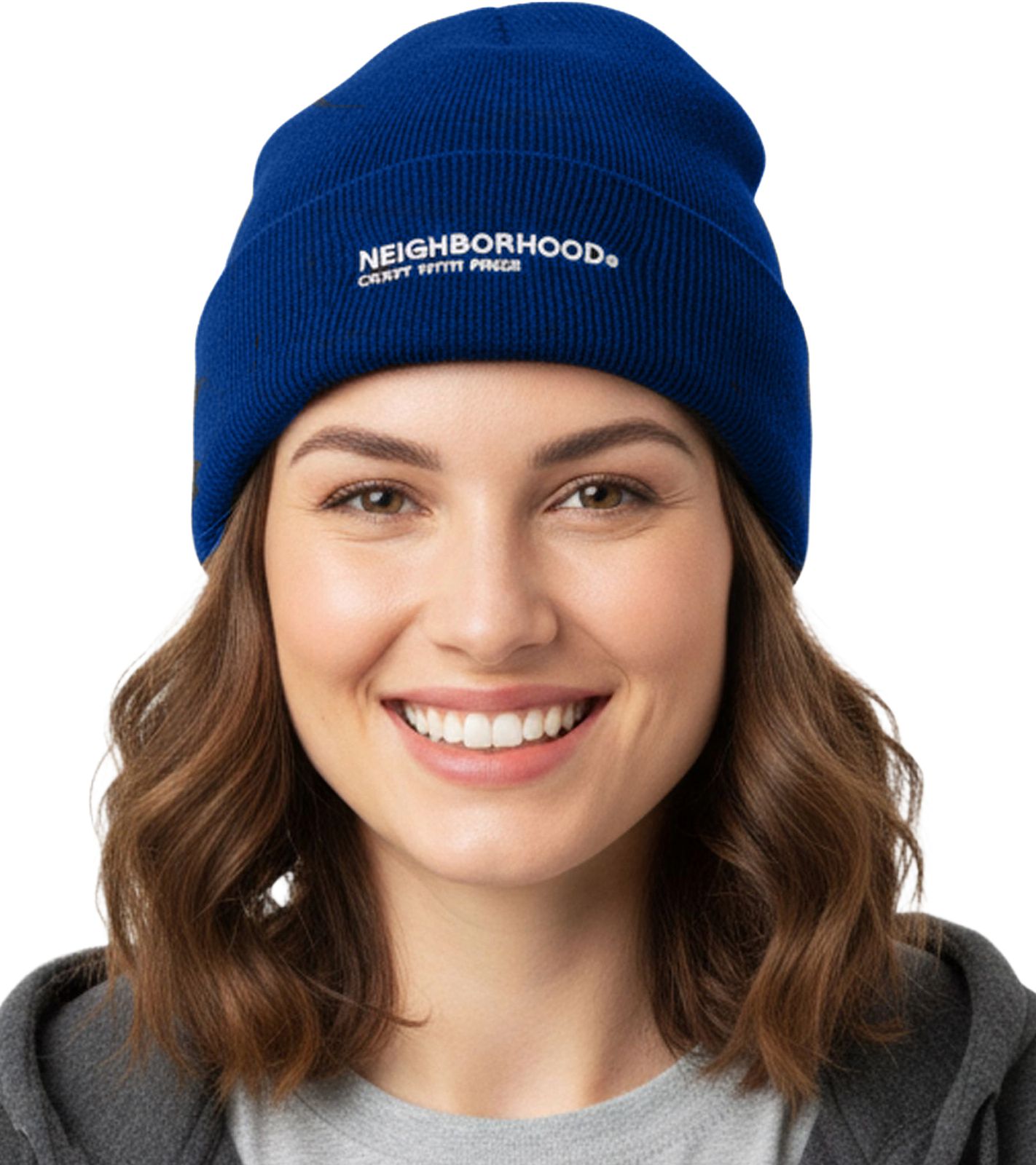 Neighborhood Unisexmütze Warme Strick-Mütze mit Logo-Patch Klassisches Streetwear-Beanie Blau
