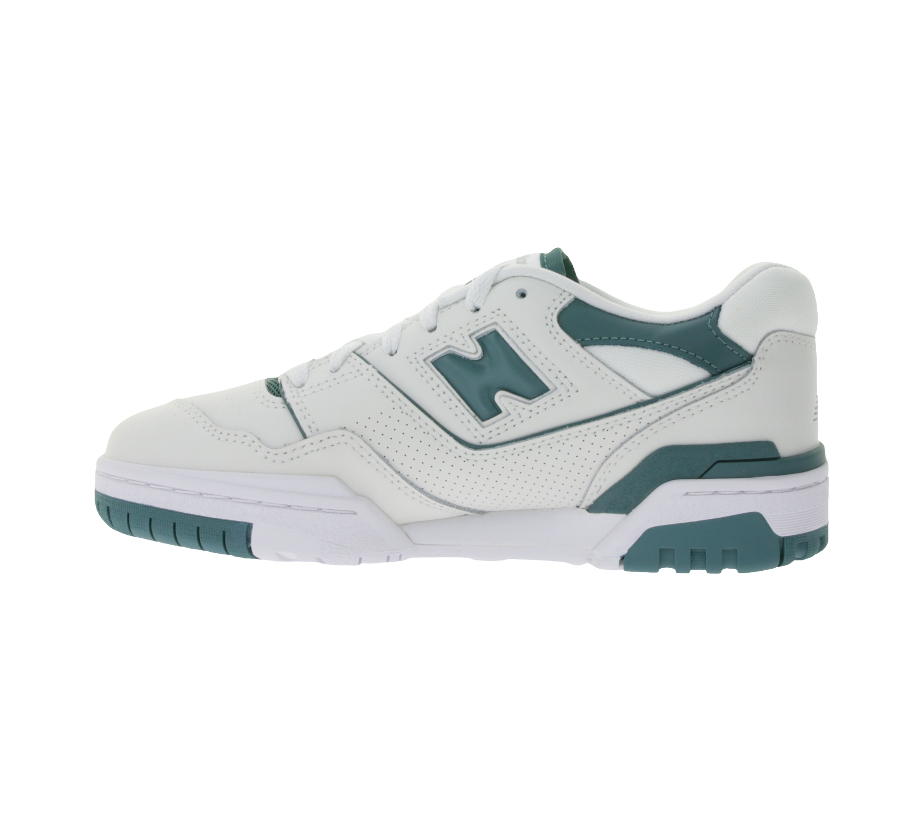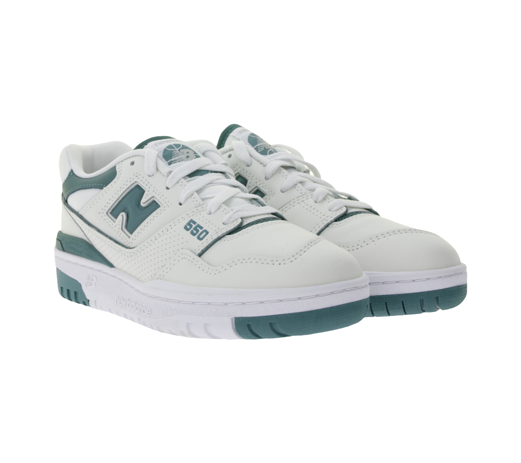 New Balance 550 Damen Echtleder-Sneaker mit perforiertem Upper Low-Top Schuhe mit Ortholite-Innensohle BBW550BI Weiß/Grün