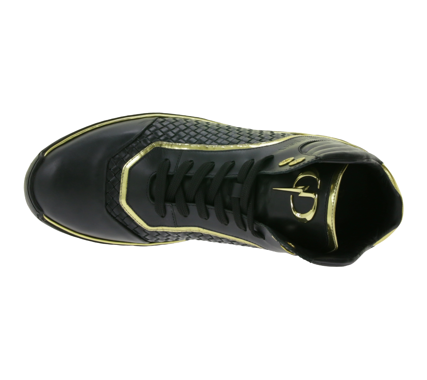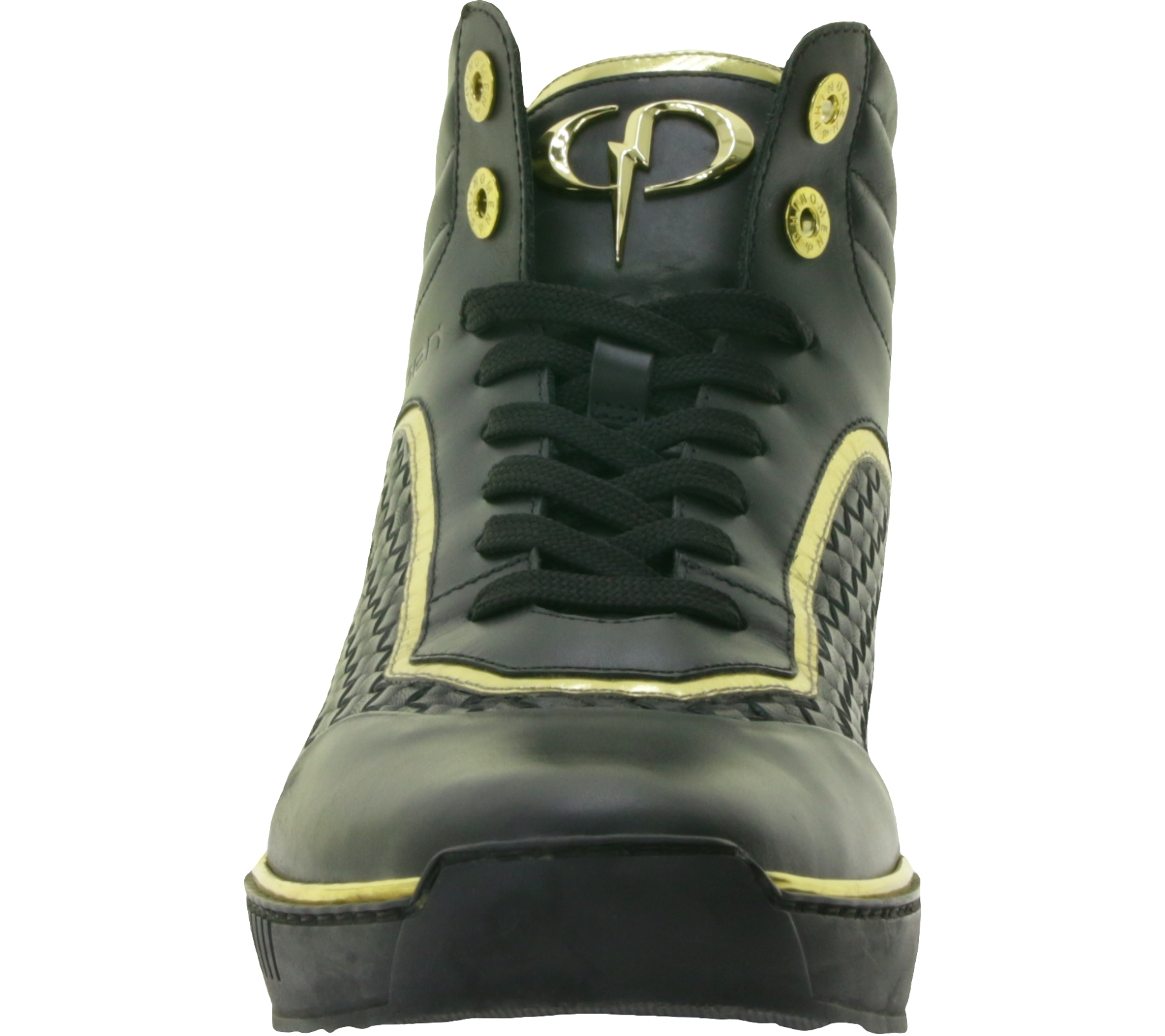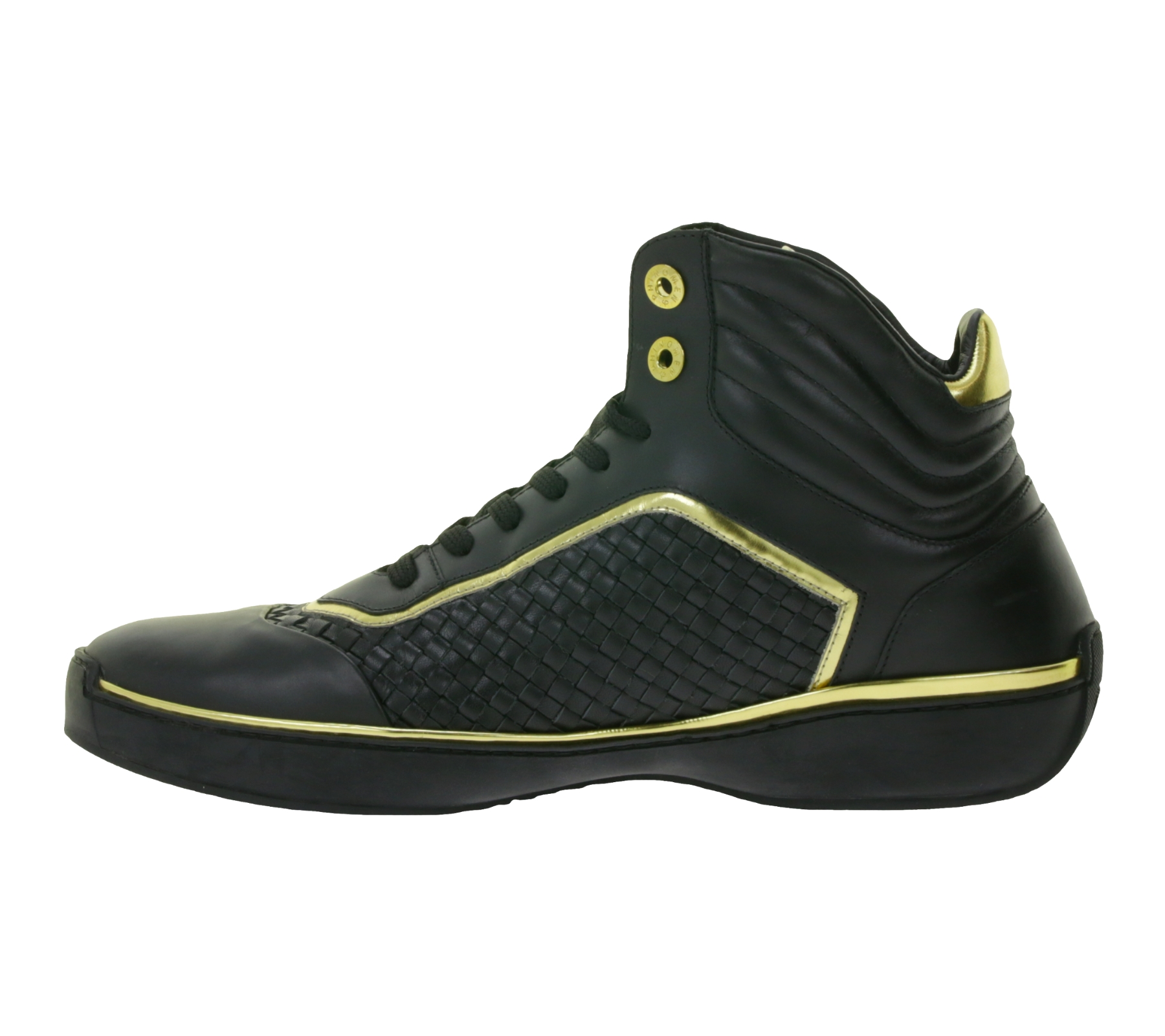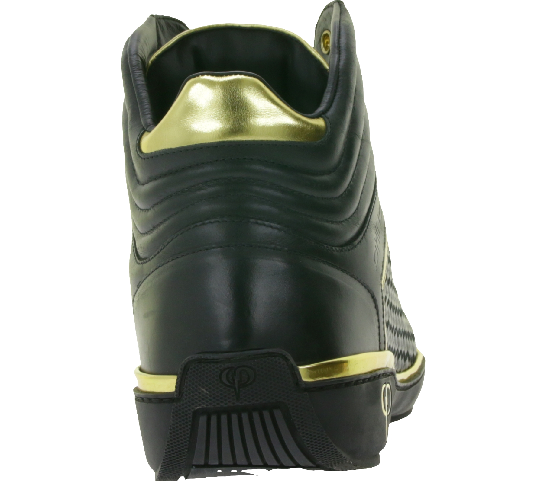 PHINOMEN Damen und Herren Luxus Sneaker Made in Italien Handarbeit Echtleder-Schuhe Schwarz/Gold