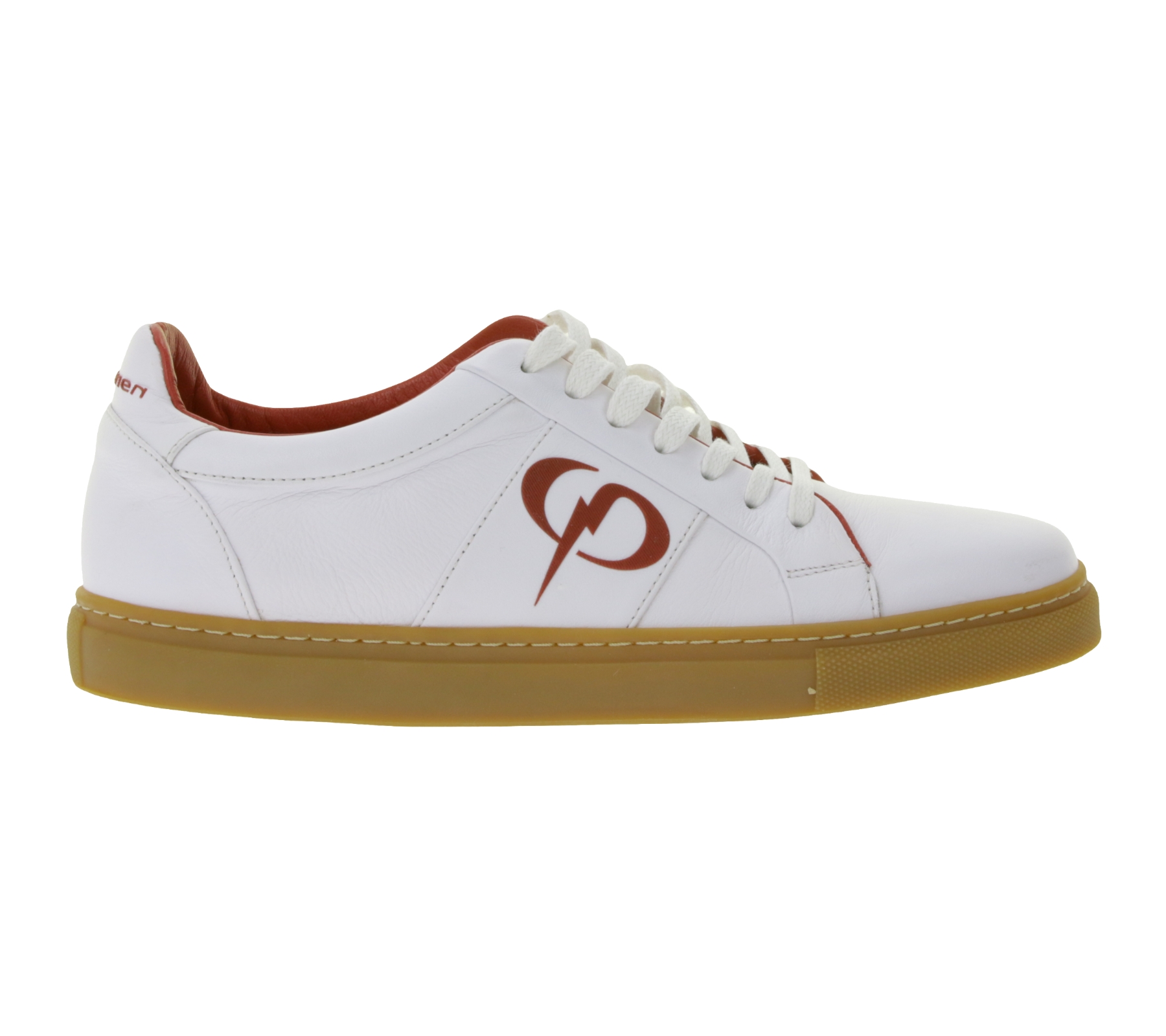 PHINOMEN Damen und Kinder Sneaker Made in Portugal mit schockabsorbierender Einlegesohle Echtleder-Schuhe Weiß/Rot