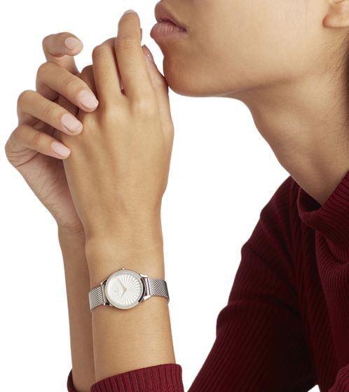 Pierre Cardin Damen Zweizeiger-Armband-Uhr modernes Ziffernblatt analoge Quarz-Uhr mit Edelstahl-Armband 3ATM 27mm CPI.2505 Silber