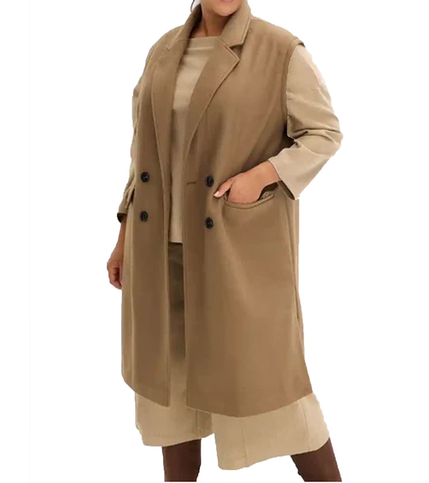 praktischer 2-in-1 Damen Mantel mit abnehmbaren Ärmeln Herbst-Weste nachhaltiger Flauschmantel 966584 Walnuss-Braun