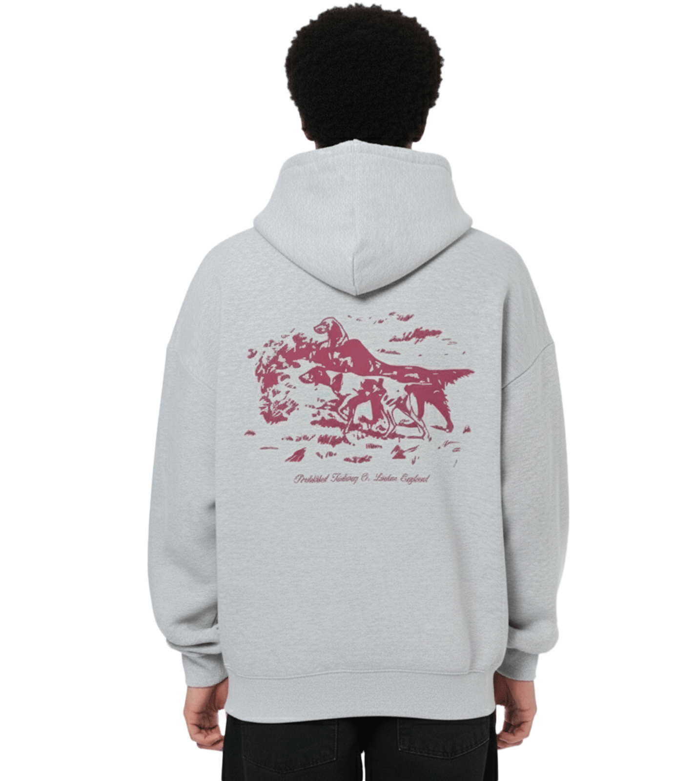Prohibited Drift Hunt Herren Hoodie mit stylischem Rücken-Print grau meliert