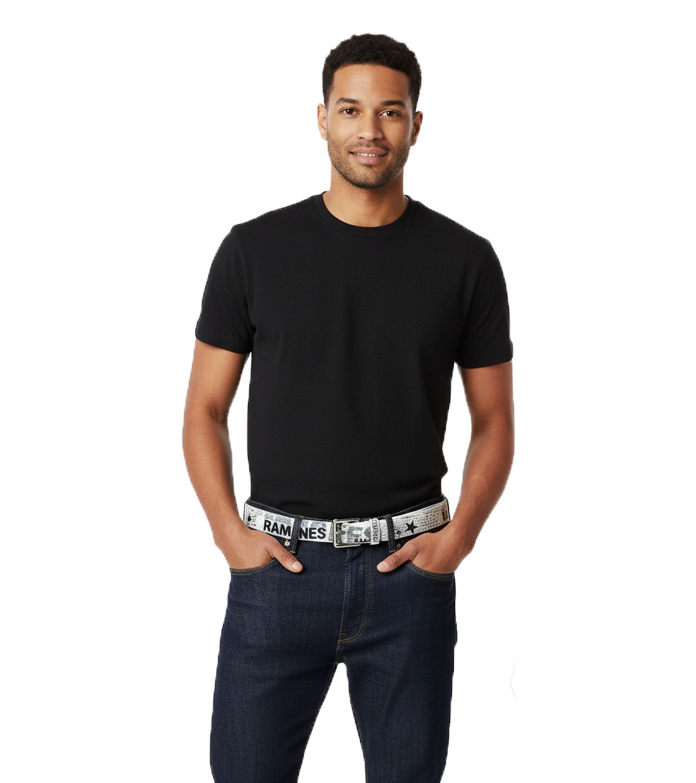 -75% RAMONES Gürtel Herren Gürtel im Zeitungsdruck Echtleder BT106126RAM3 Weiß