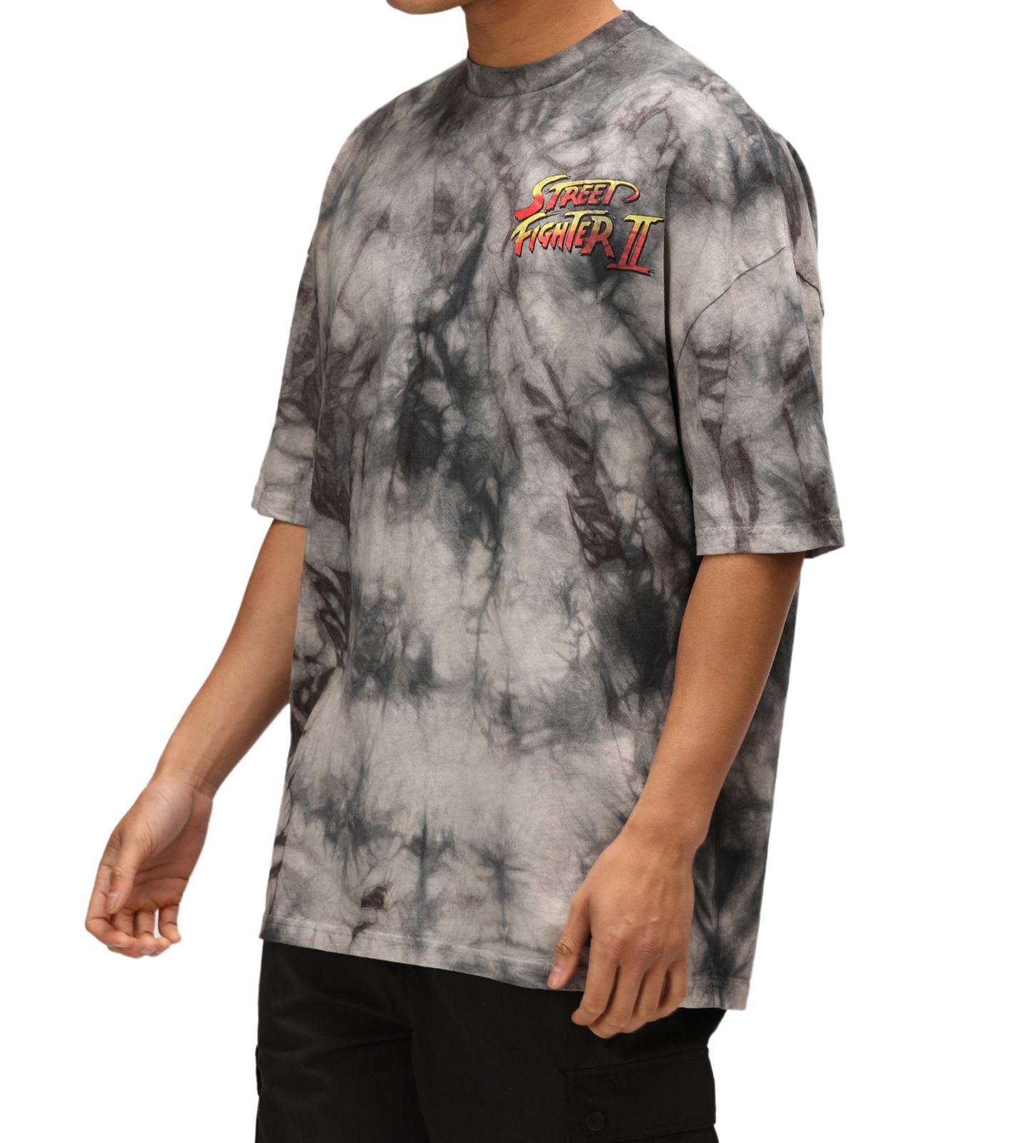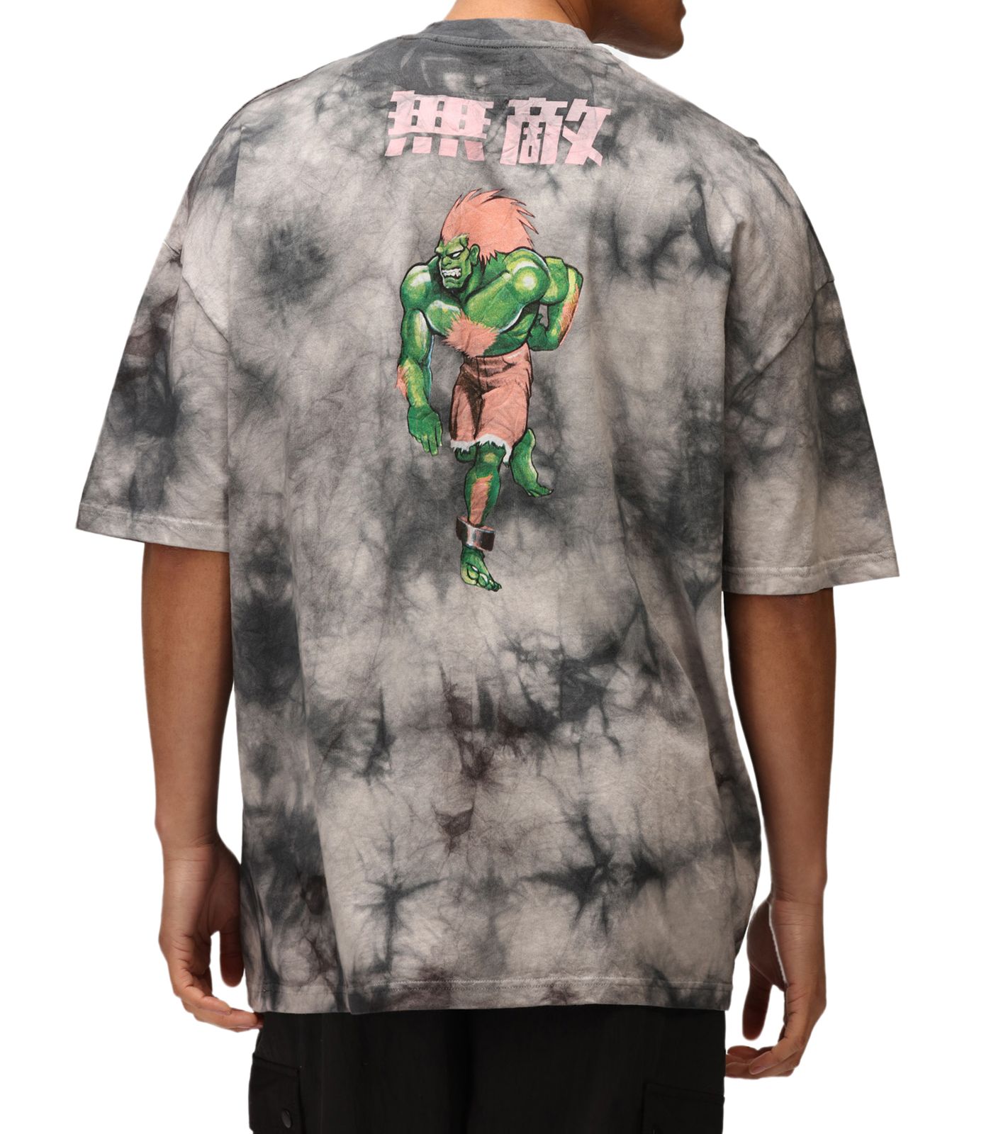 RE:COVERED X CAPCOM Herren T-Shirt mit Street Fighter-Print Baumwoll-Shirt Rundhals-Shirt in Grau mit Blanka oder in Blau mit Vega