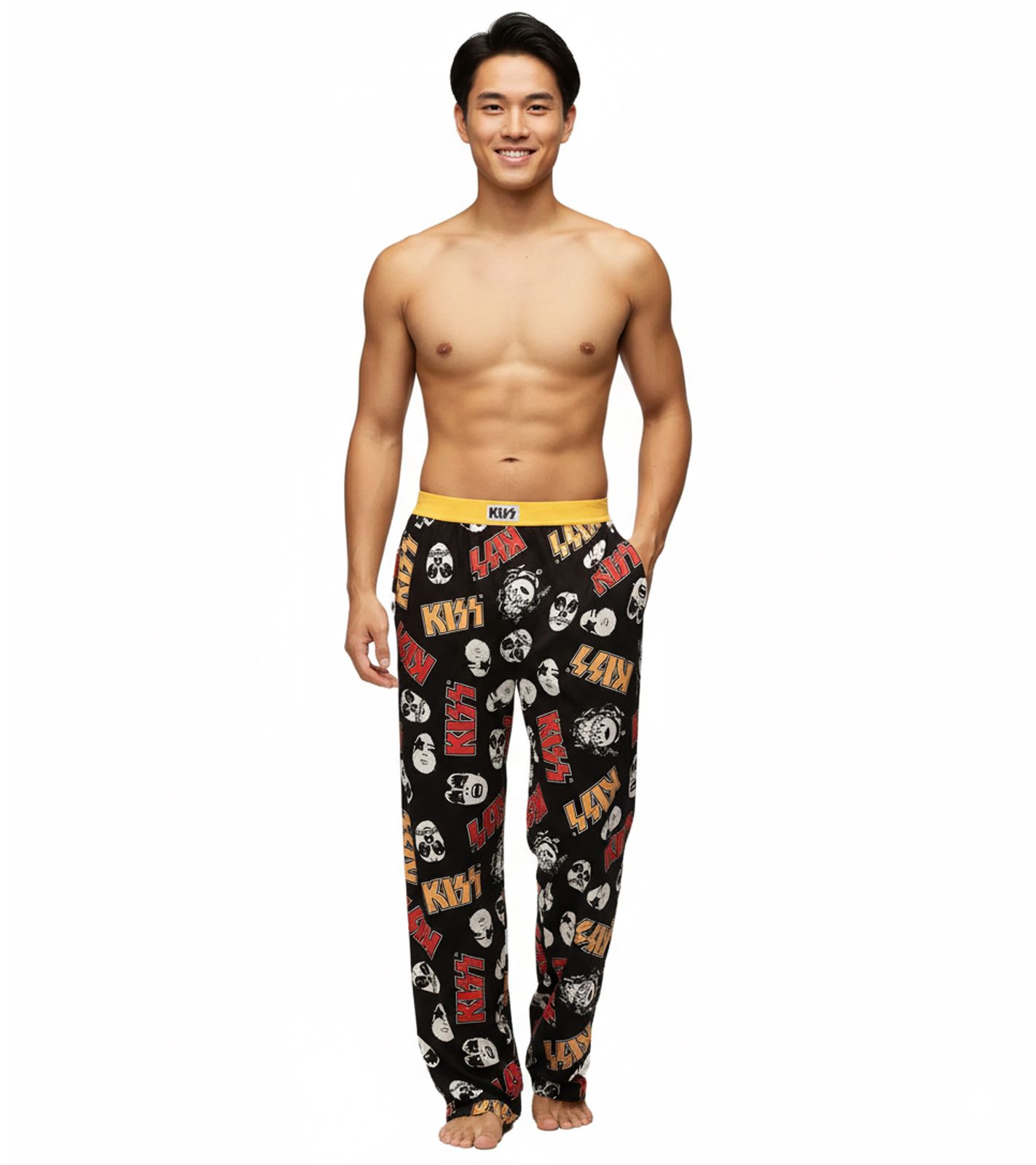 RE:COVERED X KISS Loungepants Herren Schlafanzug-Hose mit KISS-Logo Pyjama-Hose Baumwoll-Hose RCEPIC347 Schwarz