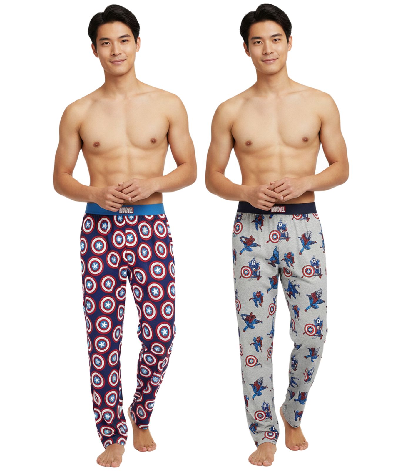 RE:COVERED X MARVEL Loungepants Herren Schlafanzug-Hose Pyjama-Hose mit Captain America oder Marvel-Figuren PCMARV50 Blau/Rot oder Grau