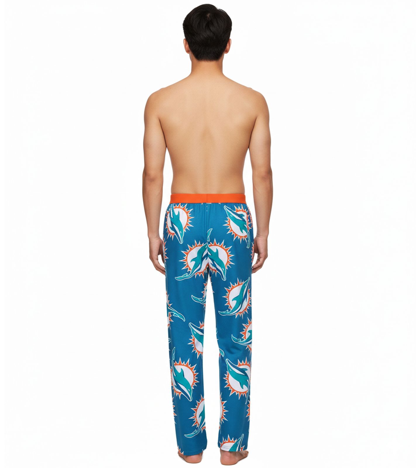 RE:COVERED X NFL Miami Dolphins Loungepants Herren Schlafanzug-Hose aus reiner Baumwolle Pyjama-Hose RCNFL1428 Blau/Weiß
