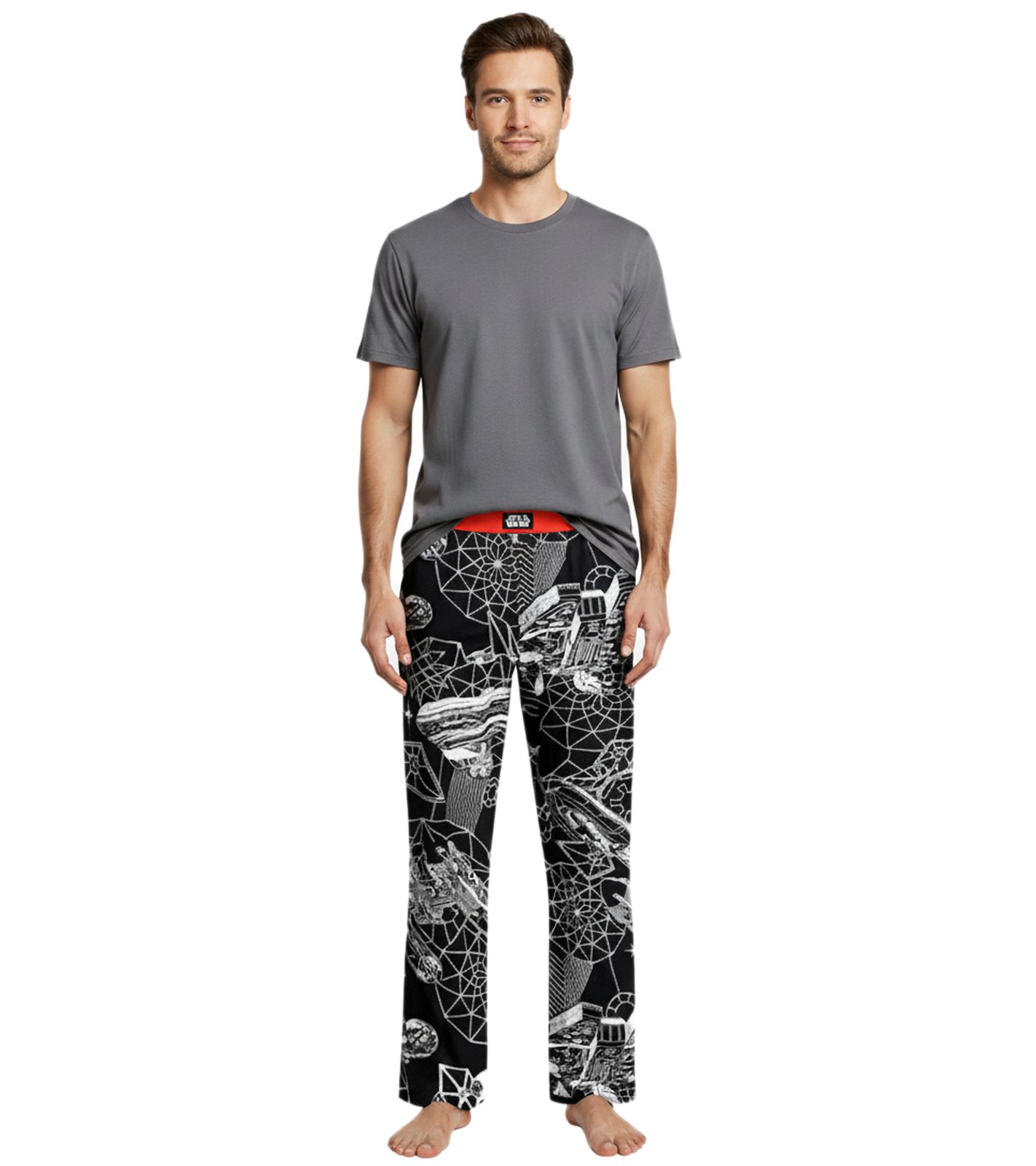 RE: COVERED X Star Wars™ Herren Pyjama-Hose Loungepants mit Raumschiff-Print Schlafanzug-Hose aus Baumwolle Modell RCDIF2107 Schwarz/Weiß