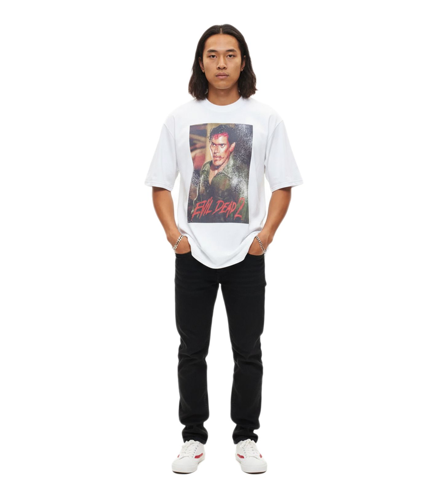 RE:COVERED X Studio Canal Herren T-Shirt EVIL DEAD 2 oder BASIC INSTINCT Baumwoll-Shirt mit großem Print Rundhals-Shirt RCSTC12 Weiß