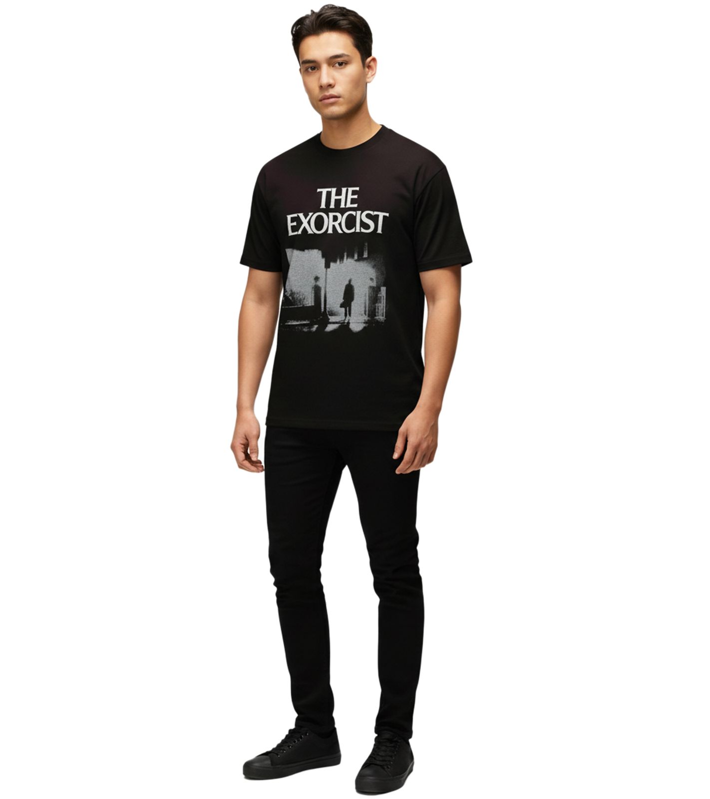 RE:COVERED X THE EXORCIST FILM Herren T-Shirt mit Foto-Print Baumwoll-Shirt Rundhals-Shirt RCWARN559 Schwarz