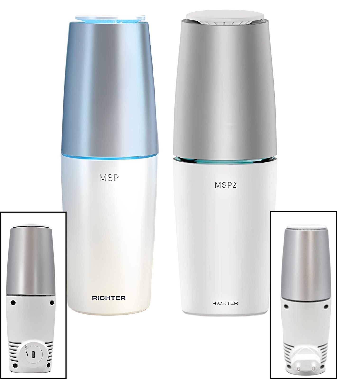 RiCHTER UV-Luftreiniger Luftsterilisator UV-Desinfektion Luftreinigung Geruchsentfernung MSP Weiß/Silber Tragbar mit USB-Anschluss oder Stationär mit Netz-Anschluss