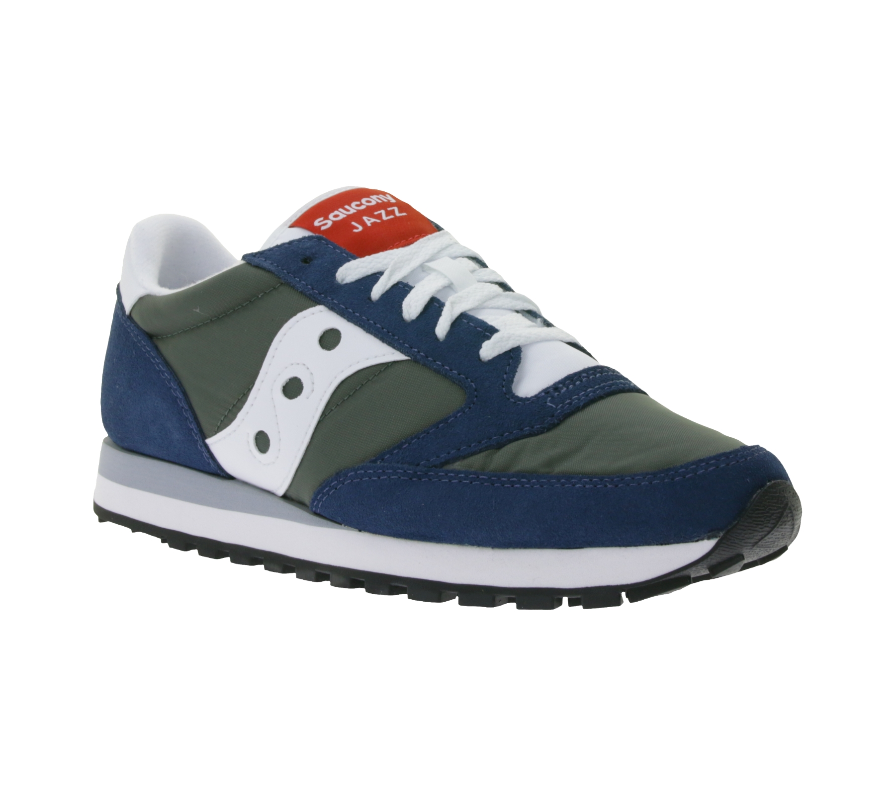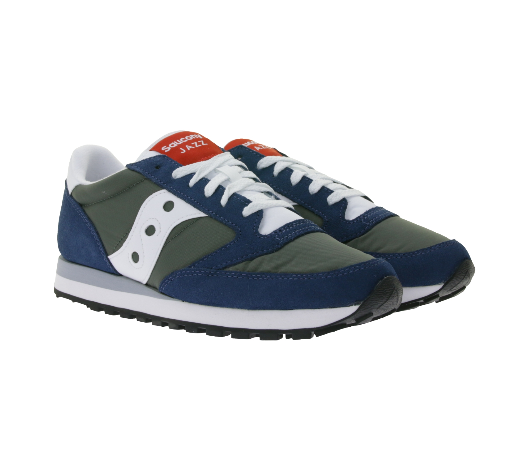 Saucony Jazz Original Herren Sneaker sportliche Low-Top Turnschuhe mit Echtleder-Anteil S2044-665 Oliv-Grün/Navy